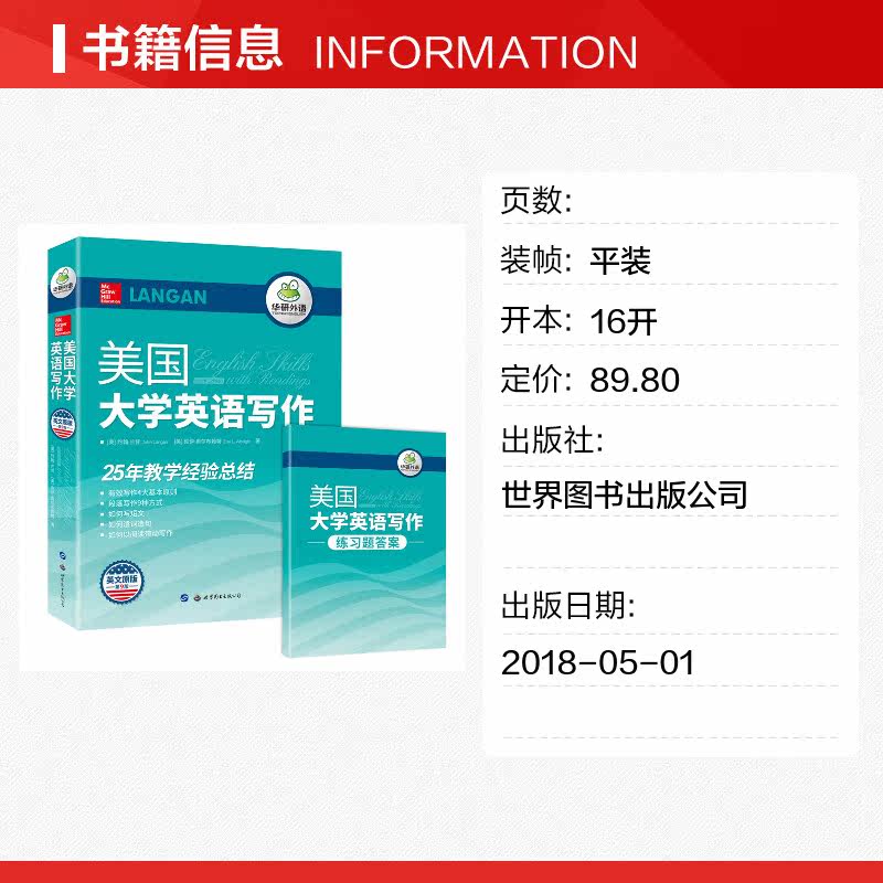 «Английский писатель в Соединенных Штатах» - это английская фотография 9 -го издания классических написанных учебников американских университетов английского языка.Основное тело книги разделено на пять частей: основные принципы эффективного письма;Приложение суммирует слова, которые склонны к ошибкам у учащихся английского языка, и обеспечивает тестирование навыков навыков написания предложений.