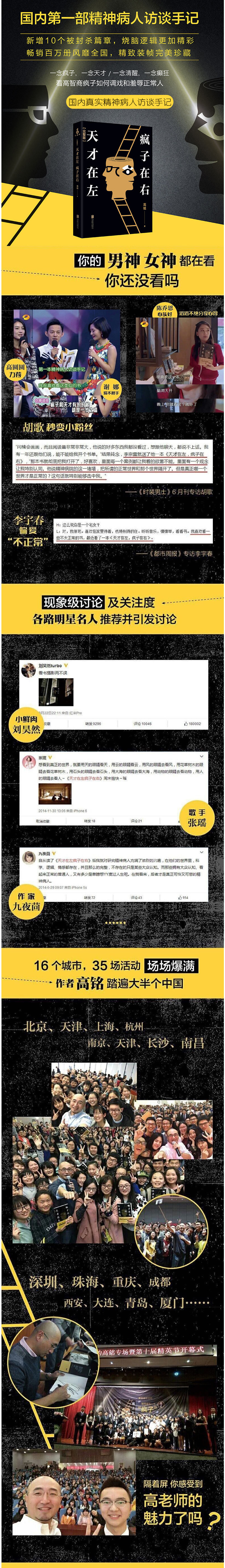 «Гениальность слева сумасшедшая справа» - это автор Гао Мин, потребовался 4 года, чтобы пойти в отдел психиатрии больницы, Министерство общественной безопасности и других таинственных учреждений, а также сотни мест"Очень хорошее человечество"После прямого контакта он записал мысли о людях, живущих в другом углу общества (психиатрические пациенты, психологические расстройства и т. Д.), Которые жили в другом углу общества.