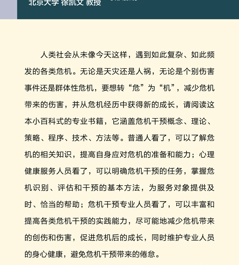 Кризис - это человеческая трудность, которая распространена в культуре. Это означает и «опасность», и «возможность». «Стратегии кризисного вмешательства» - это профессиональная работа по теории и практике кризисного вмешательства.В этой книге два автора сделали все возможное, чтобы систематически объяснить теорию, концепции, перспективы, модели и технологии области кризиса.И чтобы разрешить читателям испытать кризисное вмешательство в ситуацию и позволить большему количеству читателей, которые делают или хотят работать, они могут дополнительно понять искусство в кризисном вмешательстве. Также услышал больше об их опыте в своем карьере и слушал больше.Это не преувеличение, чтобы сказать, что «стратегия кризисного вмешательства» является энциклопедией в области кризиса.