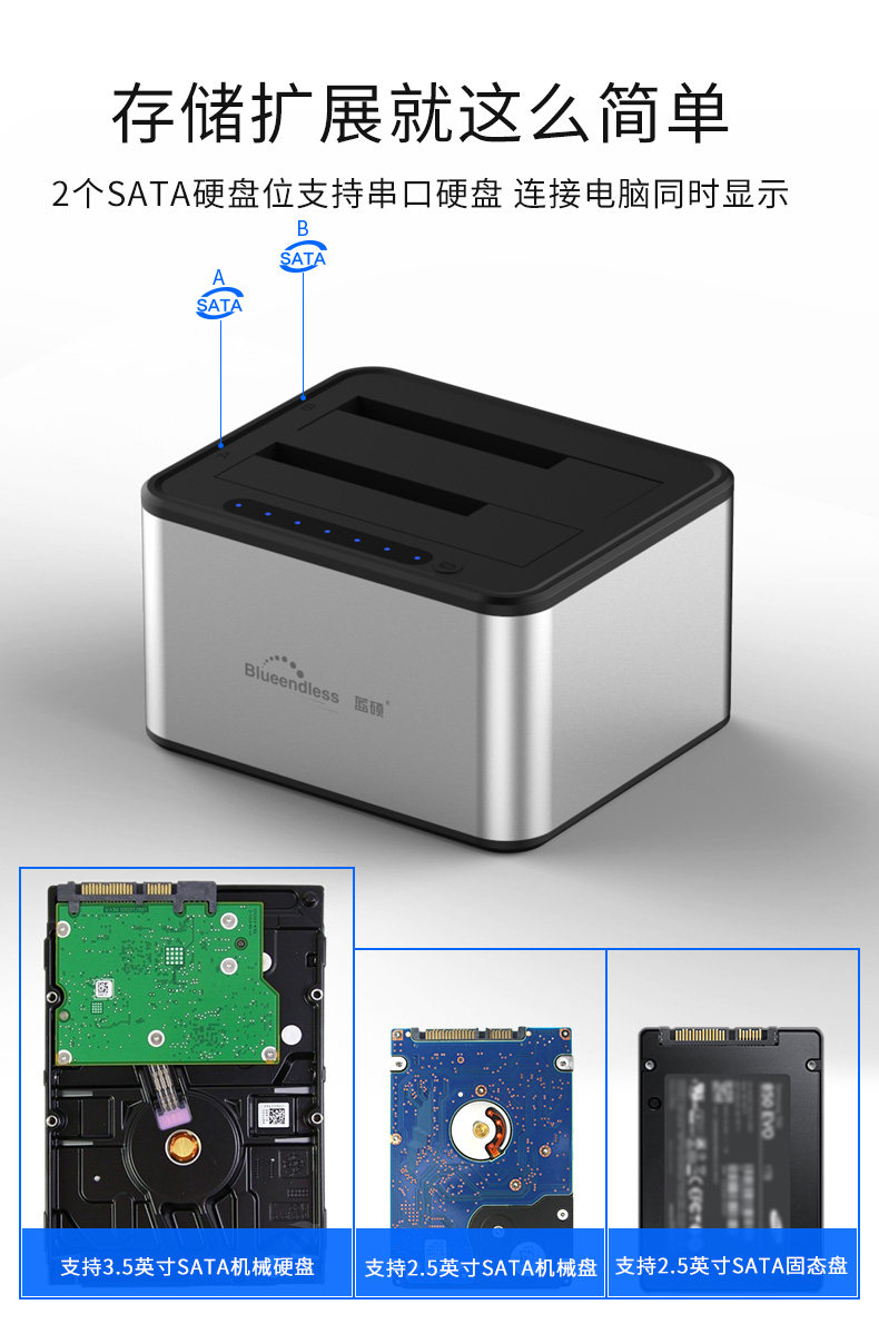 LAN SHUO 2.5/3,5 -INCH Двойное сиденье с двойным диском USB3.0 Мобильный жесткий дисковый короб