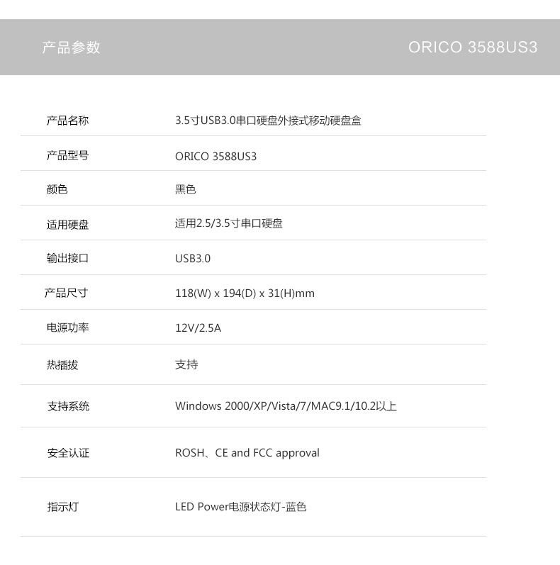 Orico Mobile Hard Disk Box Table Ноутбук USB3.0 Внешний 3,5 -INCH SATA Механический жесткий диск оболоч