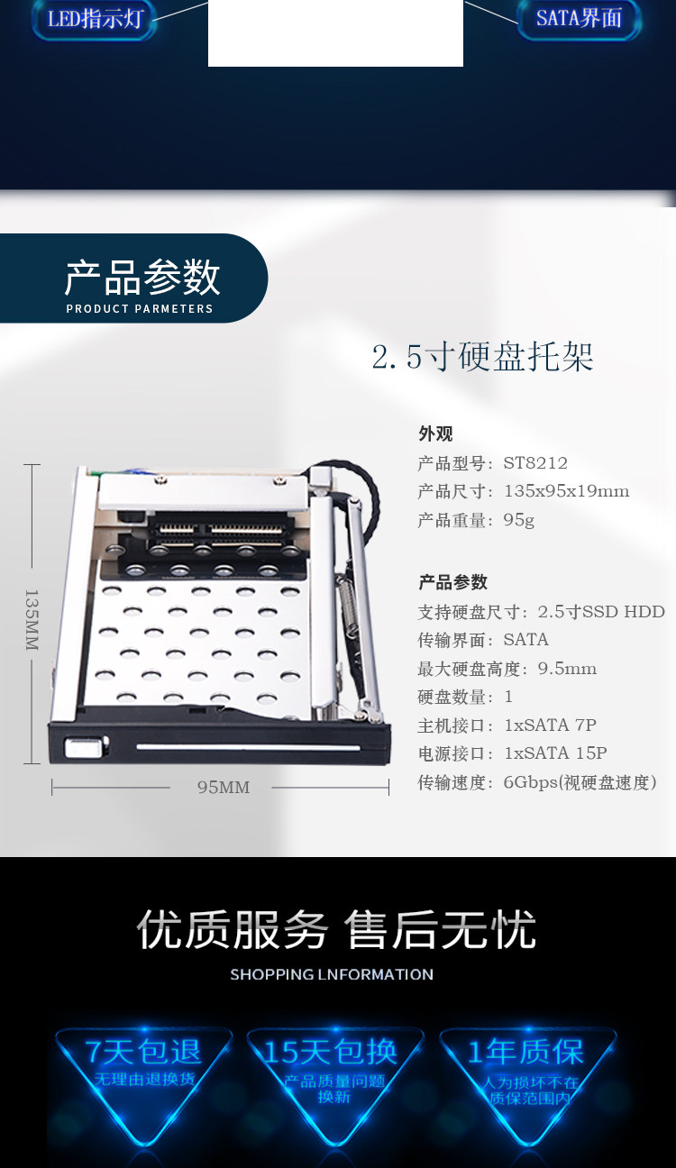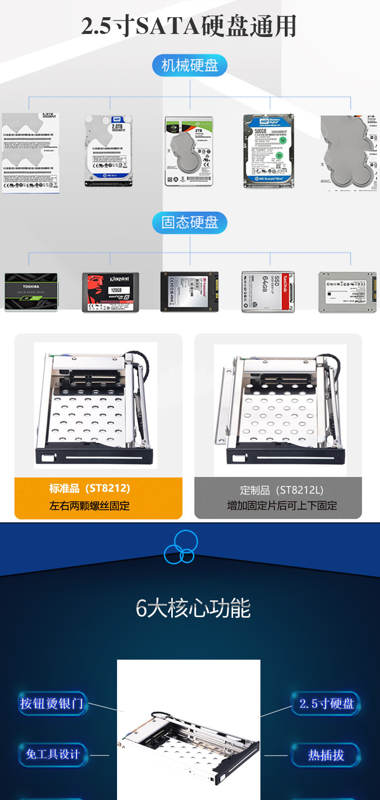 Совместим со всеми 7 ~ 9,5 мм толщиной 2,5"SATA жесткий диск