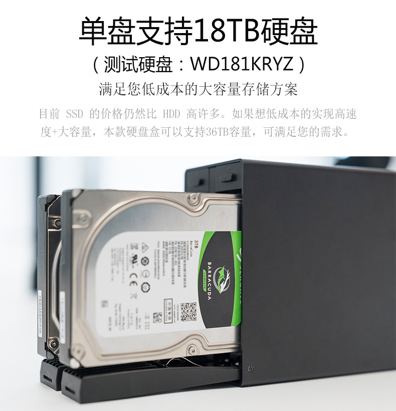 ПРИМЕЧАНИЕ. Новые результаты теста этой коробки с жестким диском могут поддерживать 18 -ТБ жесткие диски (жесткий диск 18TB: WD181Kryz был протестирован; 16TB: ST16000VN001; 14TB: ST14000VN0008; 12TB: HUH721212ALE600), пожалуйста, проконсультируйтесь с сотрудниками службы клиентов для деталей.