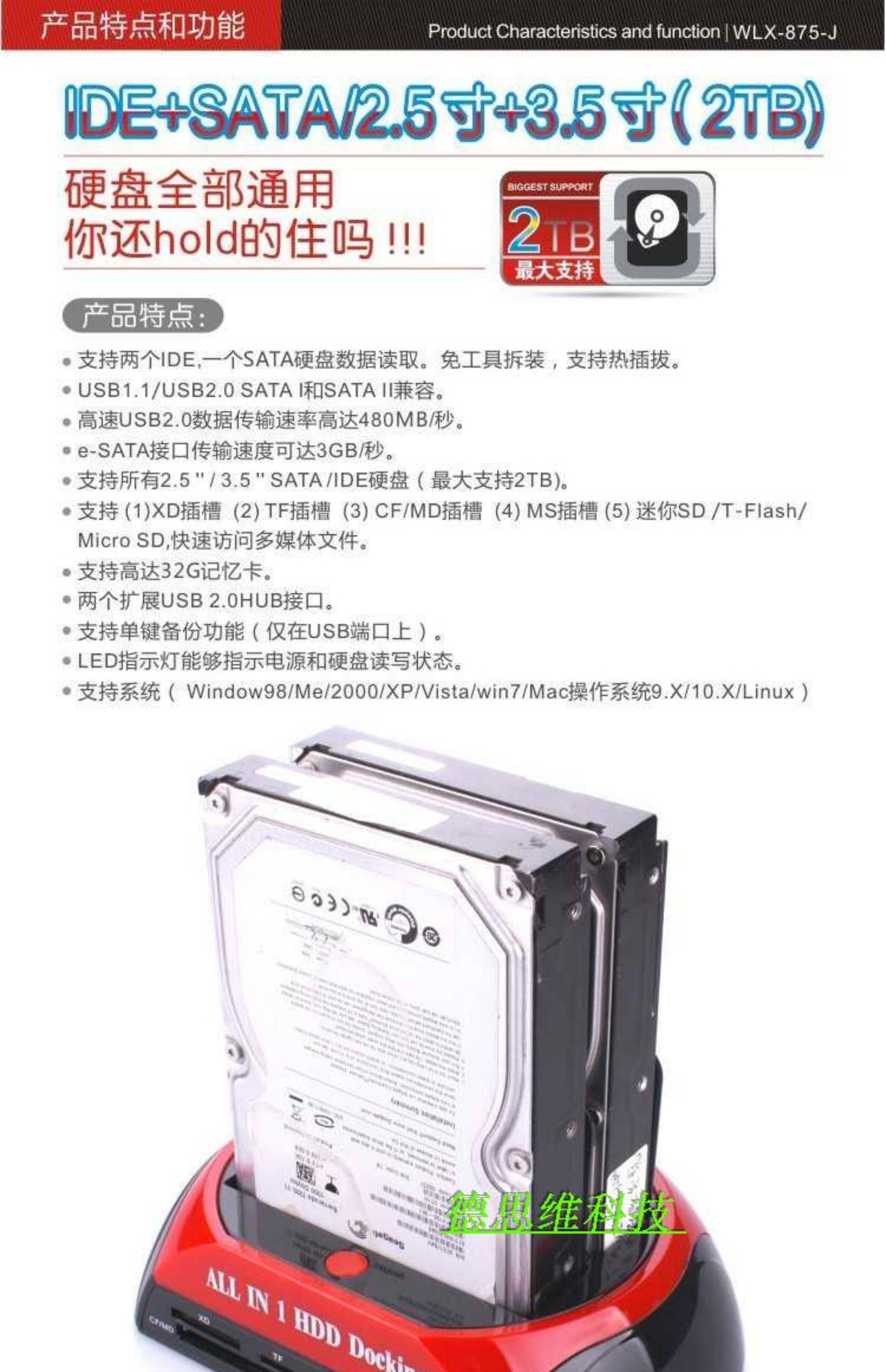 USB Hard Drive Base Base IDE/SATA и серийный жесткий диск Multi -функциональный карт чтения 2,5/3,5 дюйма жесткий диск