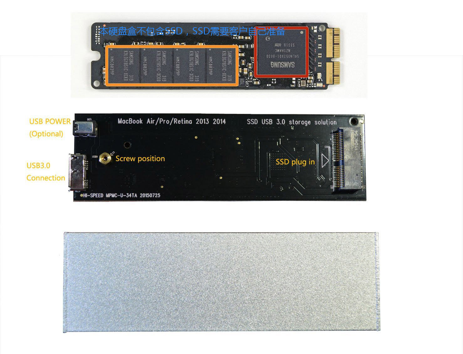 Spot! MacBook Air Pro Retina 2013 2014 2015 SSD Hard Disk Box USB3.0