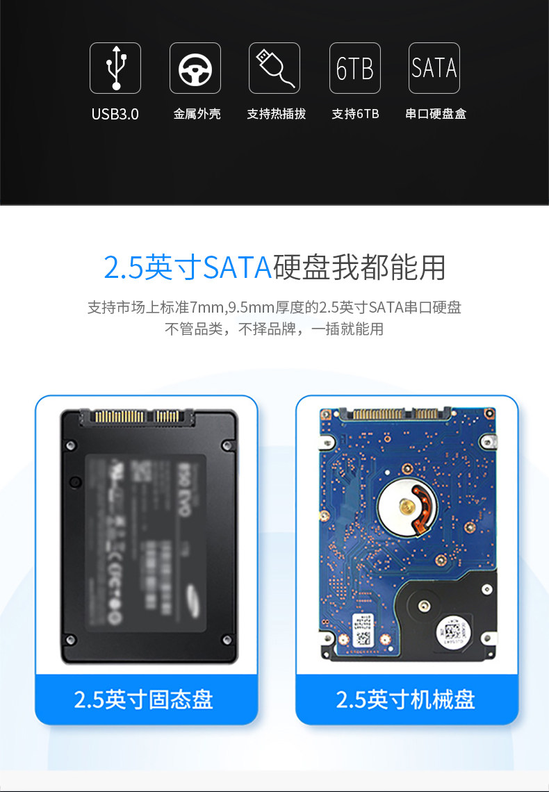 SSK King USB3.0 Hard Disk Box 2.5 -INTH Serial Port Mobile Hard Disk Box SSD Solid -State Hard Drive Box