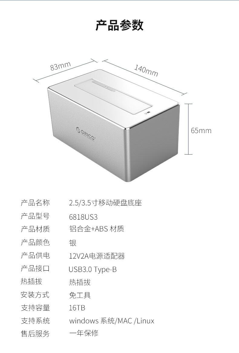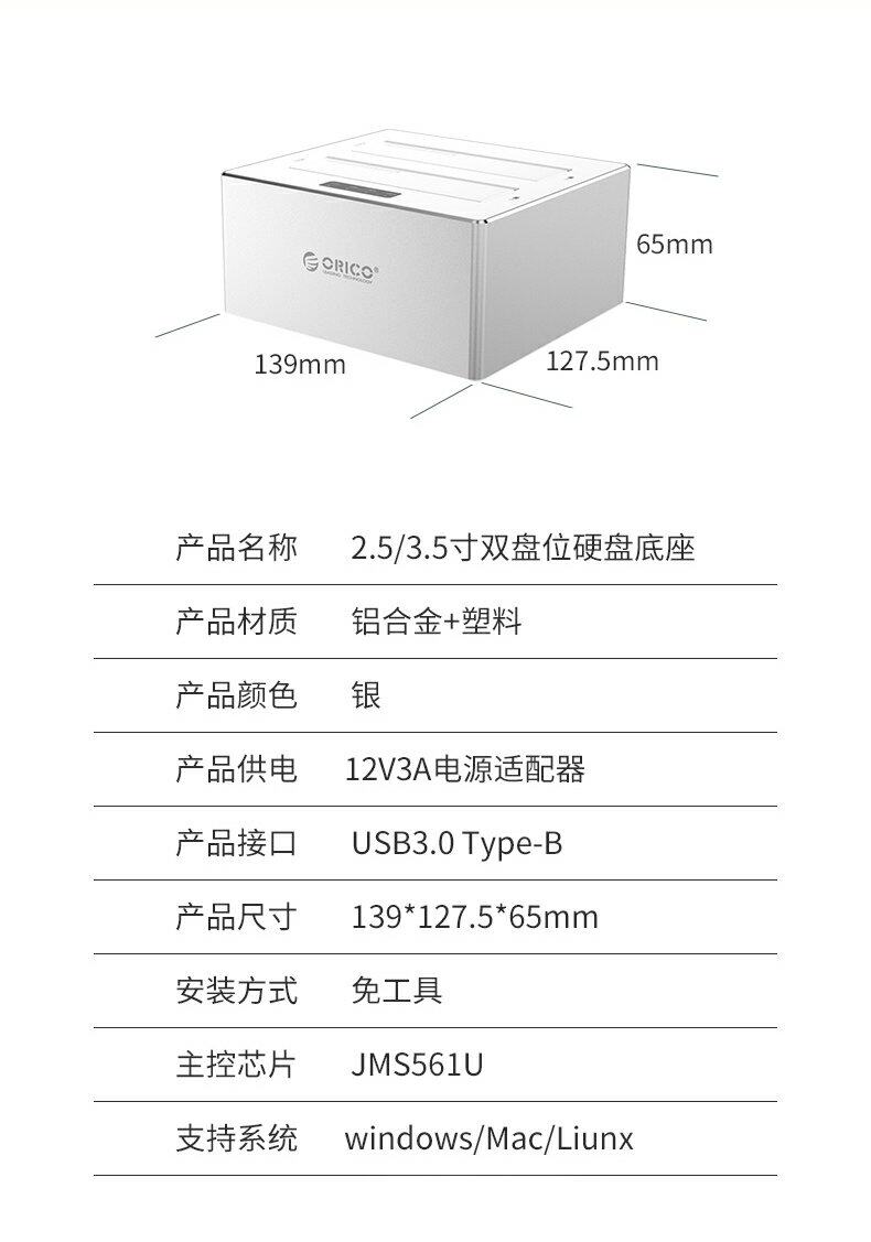 ORICO/ORRE 2.5/3,5 -INCHINCH АЛЮМИНЕГО СЛАТА USB3.0 МОБИЛЬНАЯ БАЗА САТА SATA3.0 Serial Hard Disk Box.