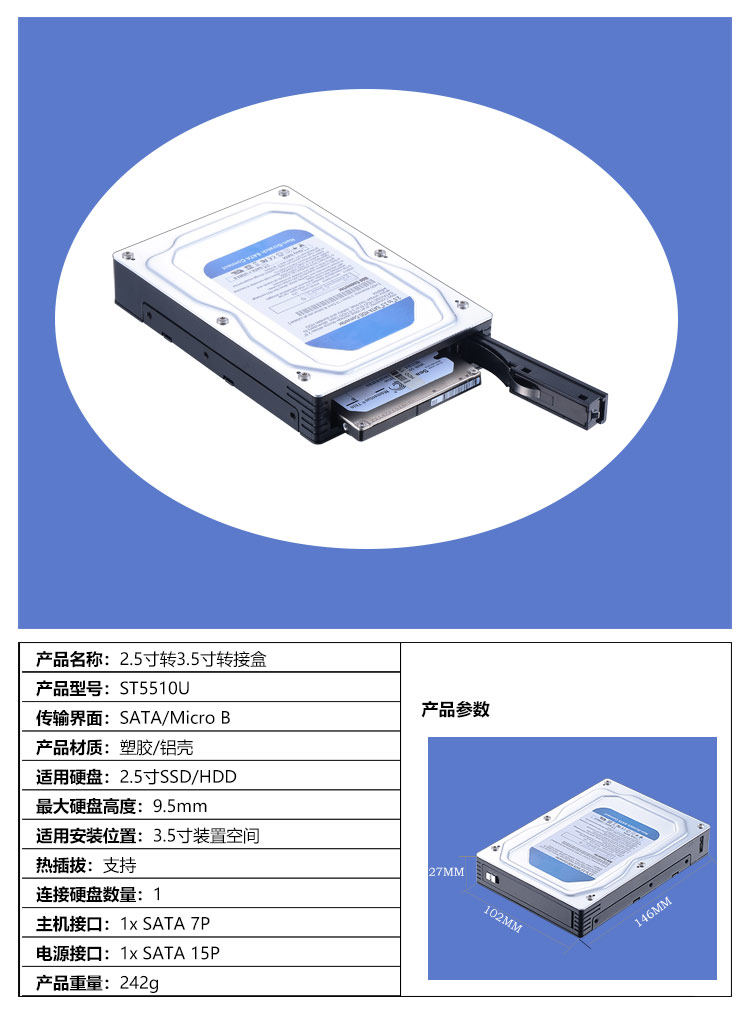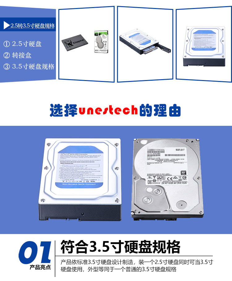 Коробка-переходник для жесткого диска Unestech с 2,5 на 3,5 дюйма SATA Коробка для мобильного жесткого диска Micro B с возможностью горячей замены