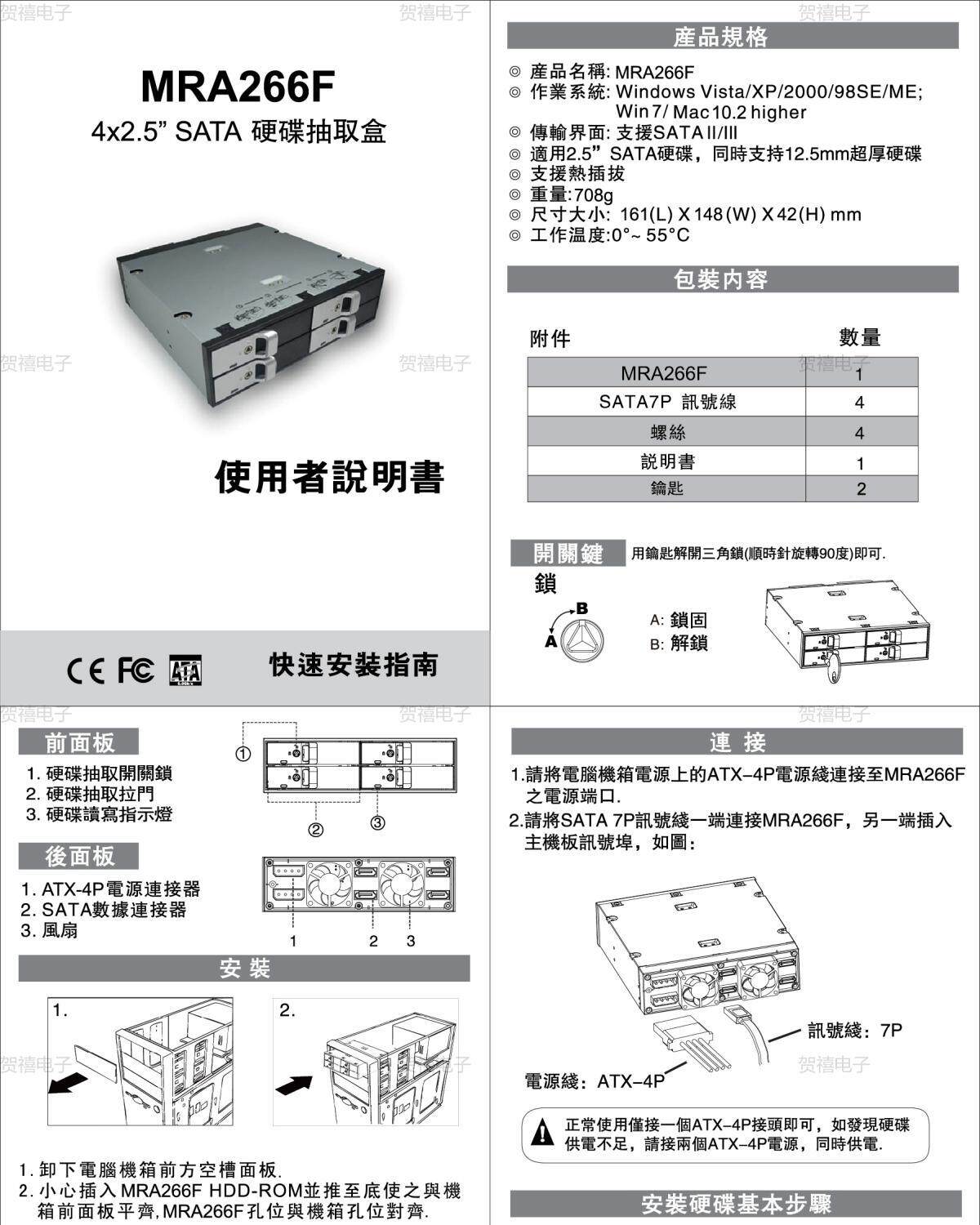 Toolfre MRA266F 2.5 -INCH 4 Диск SATA 6 Гбит / с оптический привод жесткий диск