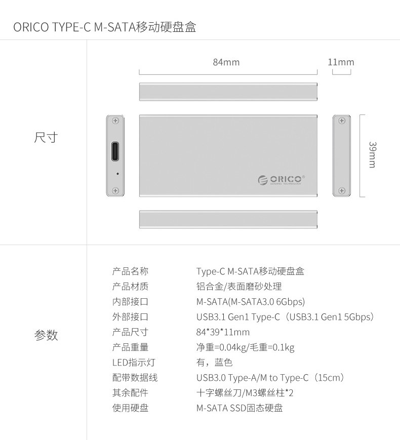 Orico/奥睿科 Type-CMSATA SSD Hard Disk Box Ноутбук SATA3 Мобильный жесткий дисковый ящик USB3.1 Внешний внешний защитный чехол