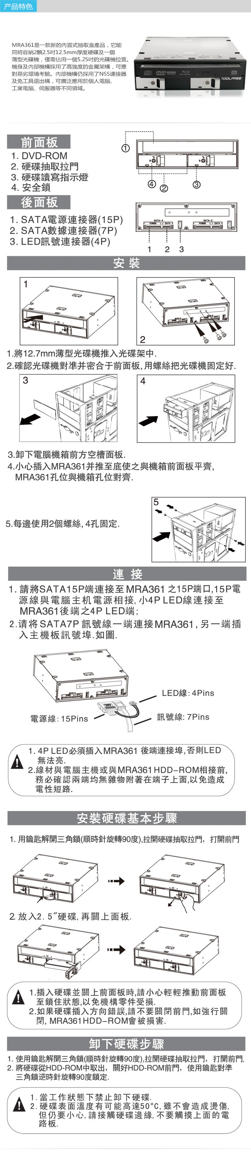 Toolfre MRA361 2.5 -INCH 2 Диск SATA 3 Оптический привод с жестким диском коробкой+