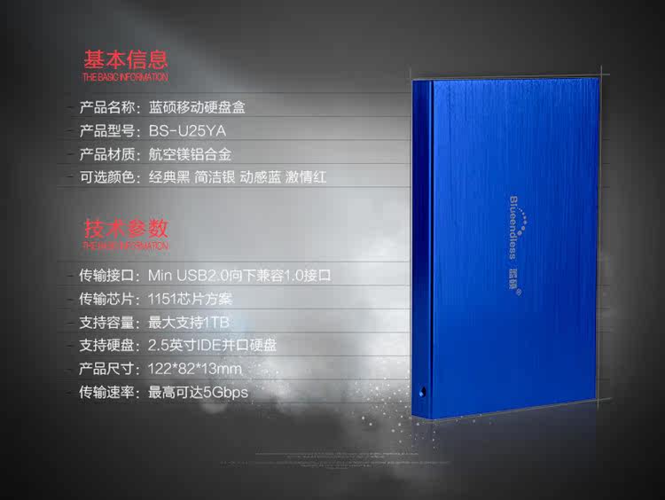 Lansshuo Special Mobile Hard Disk Box 2.5 -INCH USB Interface 2.0 Notebook IDE и Metal Metal Shell