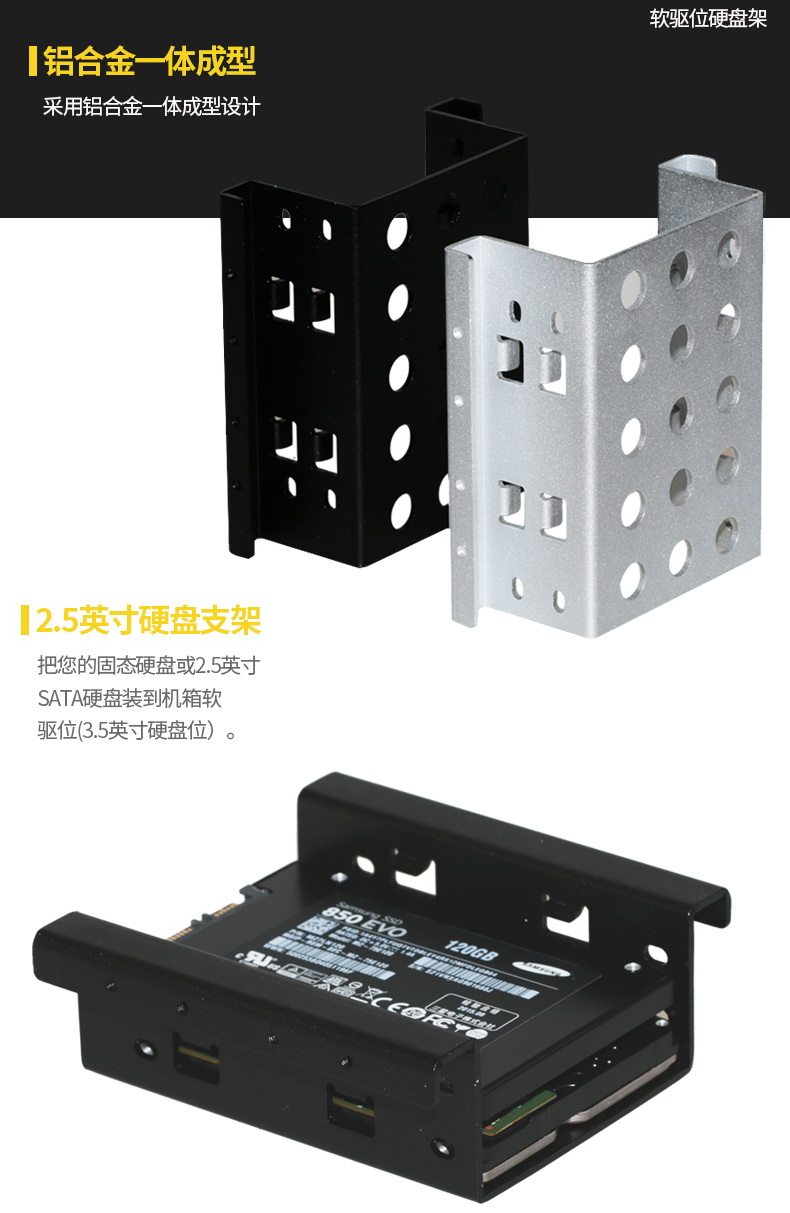 Shuo Litai от 2,5 до 3,5 -вдюрм -алюминиевого сплава на рабочем столе жесткий дисковый кронштейн SSD с твердым сплошным кронштейном полный алюминиевый двойной диск