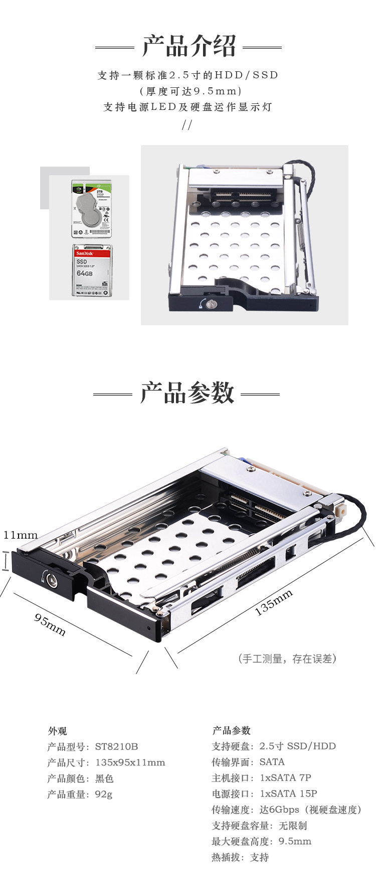2.5"SATA построил в жестком диске.&Оранжевый двойной индикатор."SATA/SSD жесткий диск.