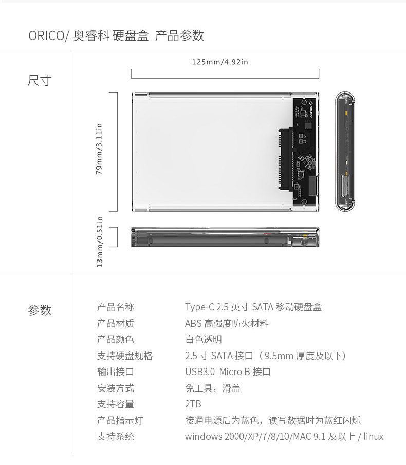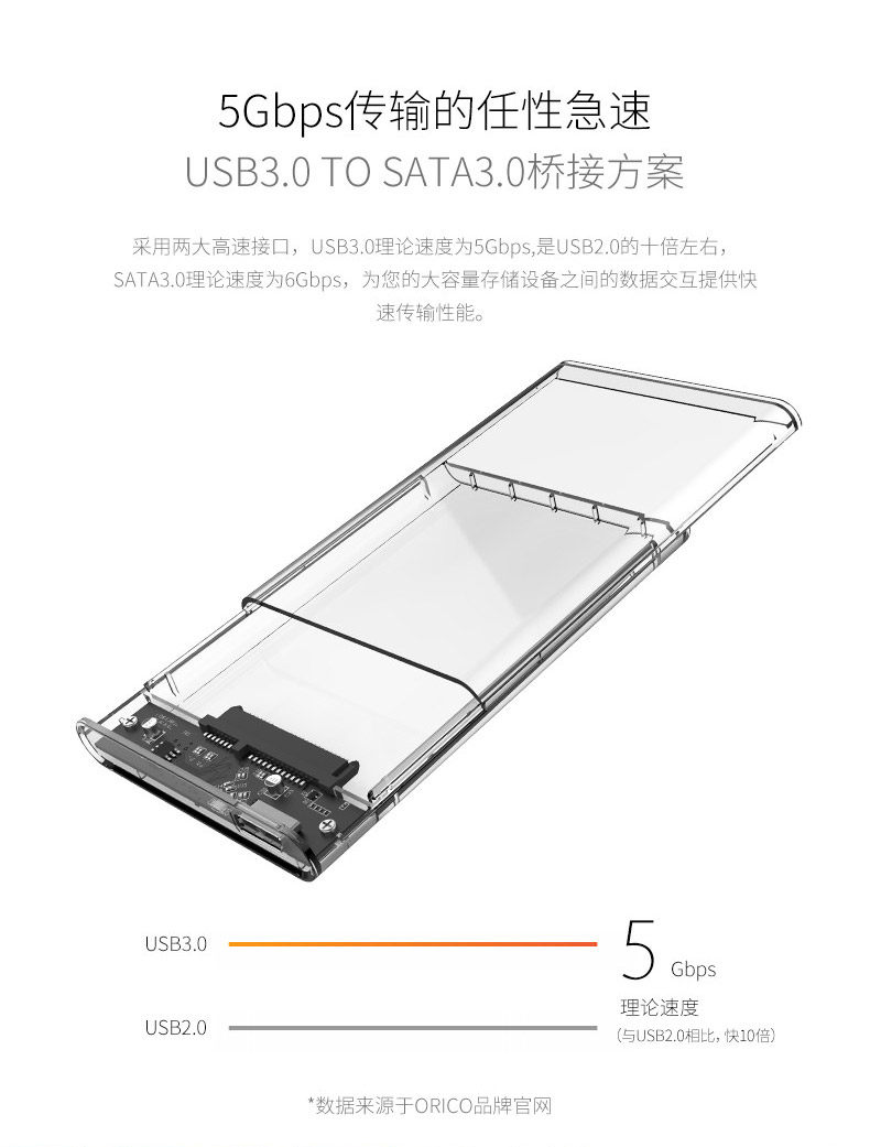 Orico 2139u3 Прозрачная USB3.0 Мобильная коробка с жестким диском 2.5 -INCH SATA SEATA SERIA