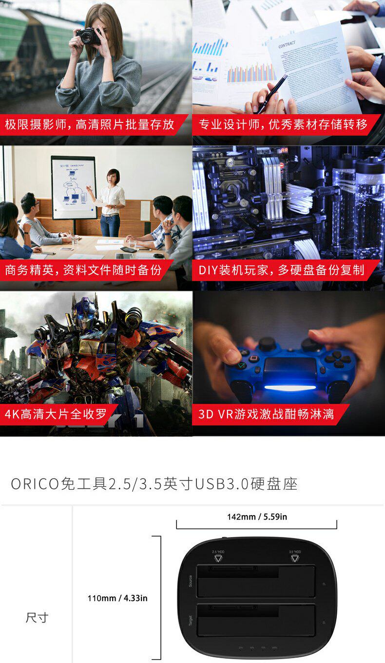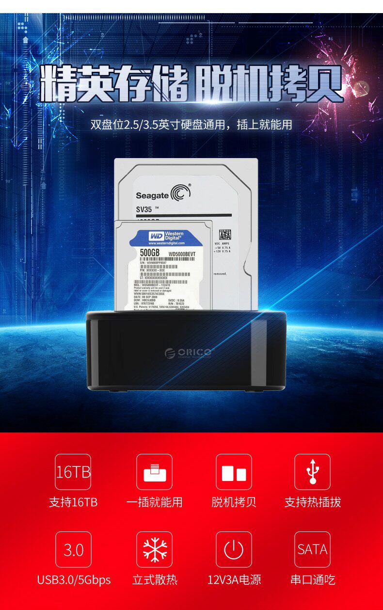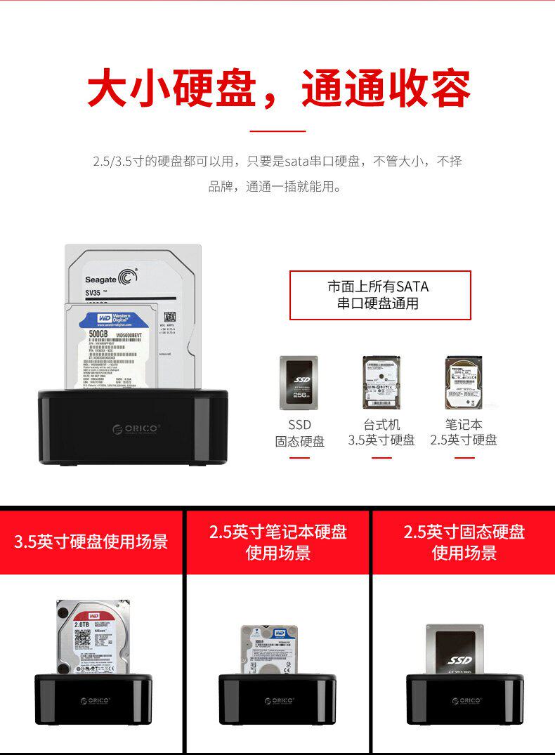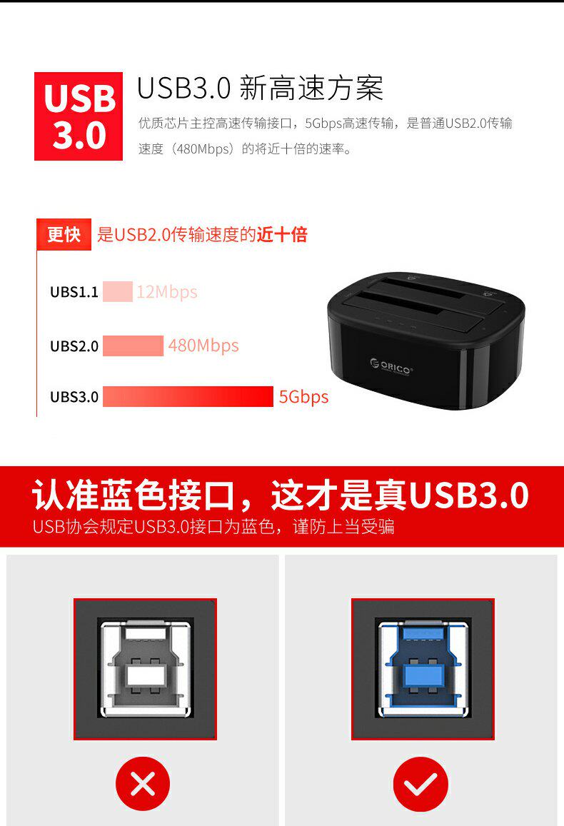 Orico/Orrico Mobile Hard Disk Base Box 3.5/2,5 дюйма Multi -Disc, общий -целеустремленное универсальное передача SATA SATA Сплошная механическая модификация USB3.0 Внешний читатель.