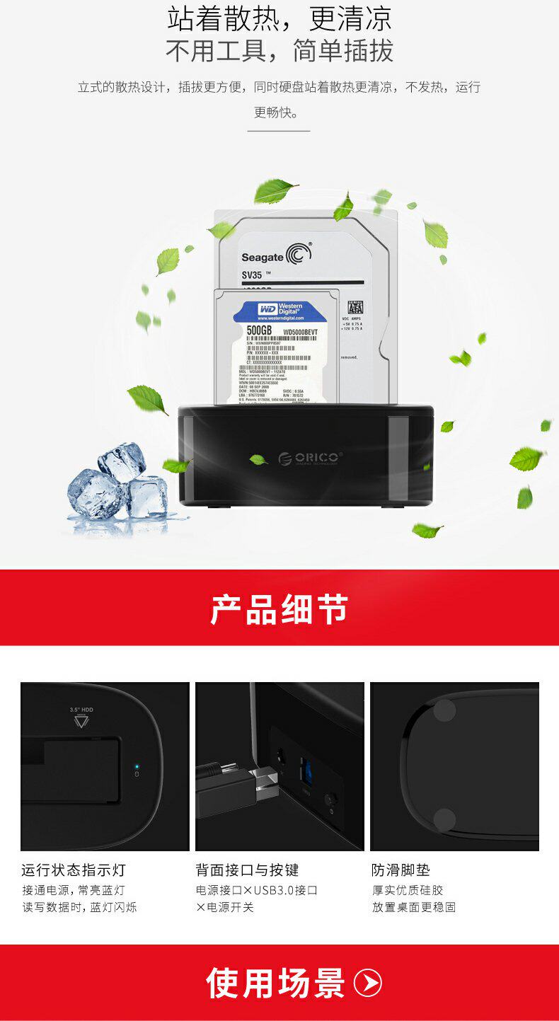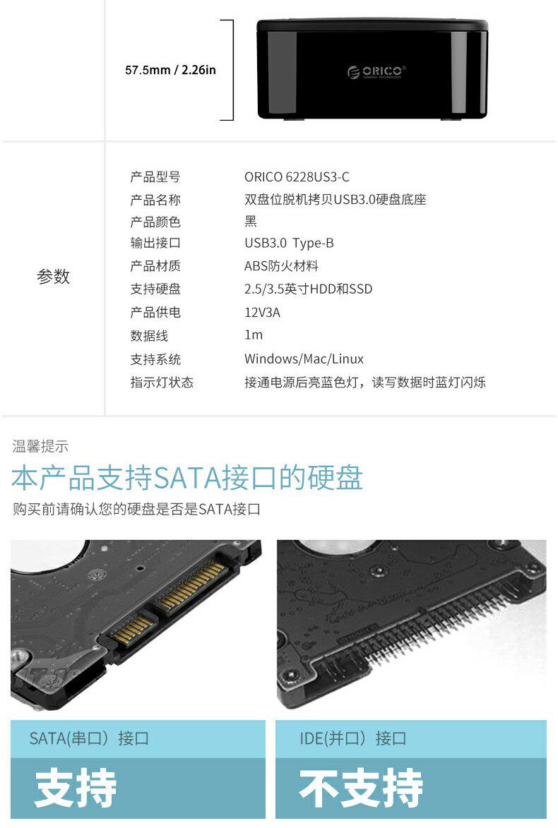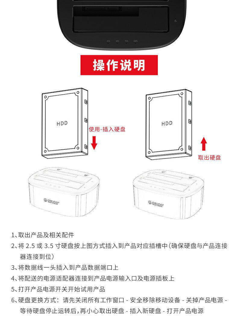 Orico/Orrico Mobile Hard Disk Base Box 3.5/2,5 дюйма Multi -Disc, общий -целеустремленное универсальное передача SATA SATA Сплошная механическая модификация USB3.0 Внешний читатель.