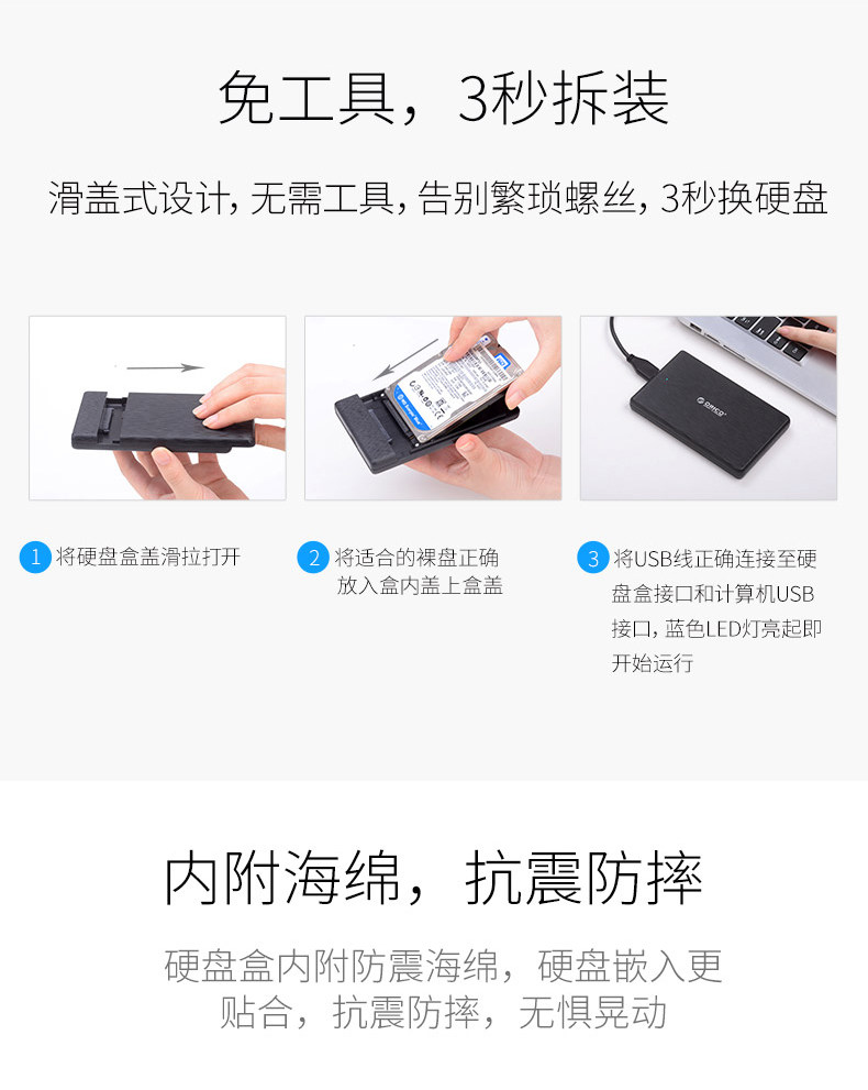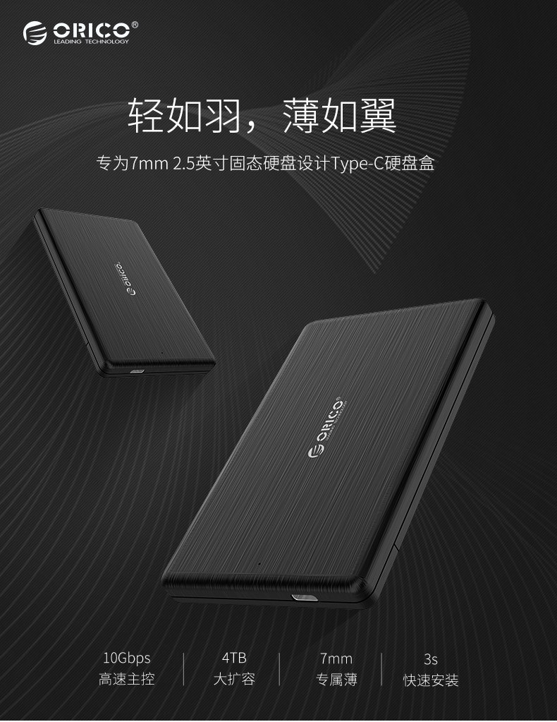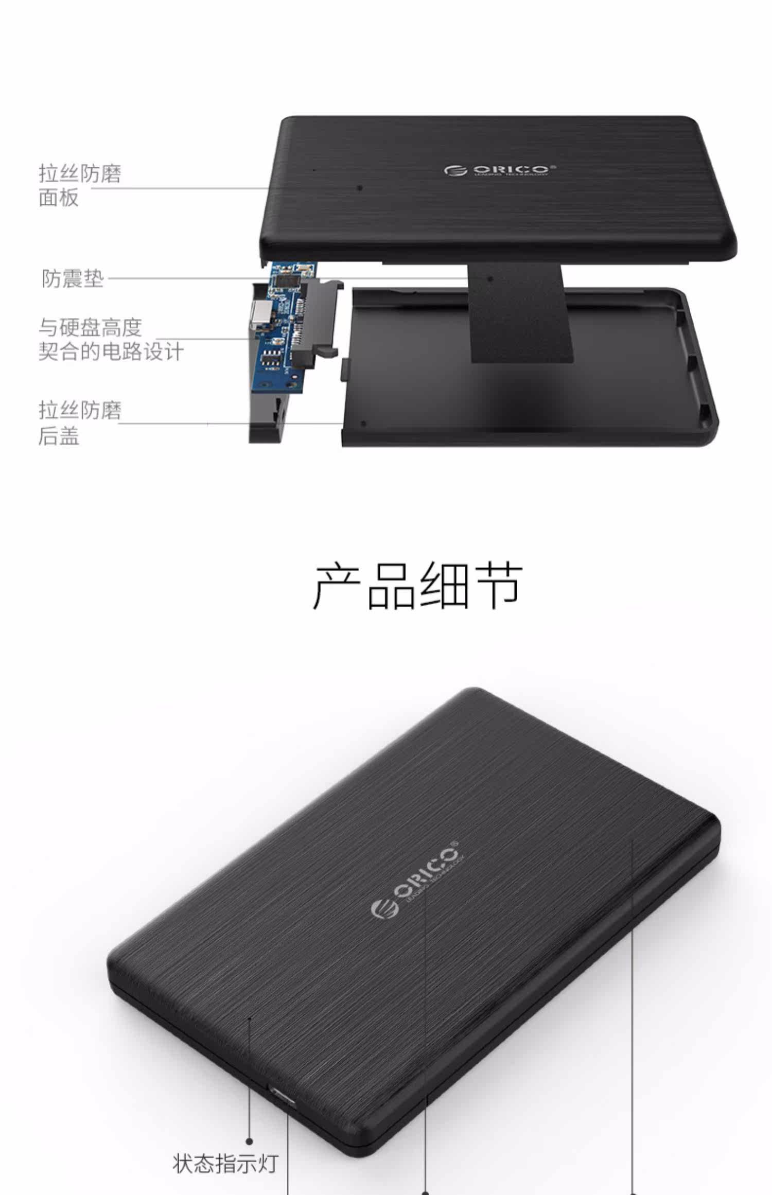 Orico/奥睿科 Недавно обновленная ноутбука типа C Мобильная коробка жесткого диска SATA2,5-дюймовая USB3.1GEN2 Hard Disk Box Solid SSD Внешнее деловое рисование Ветровое рисование Анти -ля 7 мм посвящено.