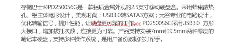 Что касается качества: я продаю эту серию корпусов для жестких дисков уже несколько лет, и ни разу ни один из них не сломался.Даже если внутри установлен жесткий диск, я не слышал от покупателей, чтобы он когда-либо был поврежден.Все, кто купил, говорили, что это хорошо.Мобильный жесткий диск, собранный в этот блок для жесткого диска + жесткий диск для ноутбука, более стабилен и долговечен, чем оригинальный мобильный жесткий диск!(В настоящее время структура многих новых оригинальных мобильных жестких дисков представляет собой просто пластиковый корпус и встроенный диск. Жесткий диск практически не закреплен внутри, а монтажная плата имеет ширину всего с палец. Мобильные жесткие диски фирменных марок могут страдать от неплотных интерфейсов и плохого контакта после длительного использования.)