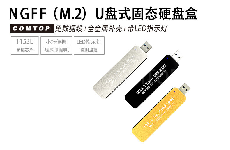 COMTOP M.2 NGFF поворачивается к USB3.0 All Aluminum 2280 Solid -State Mobile Hard Drip Box U Disk Type ASM1153E