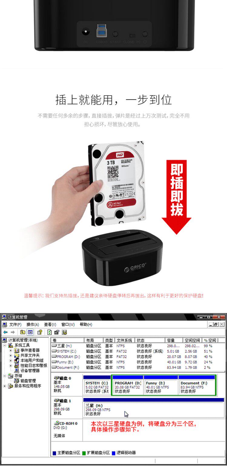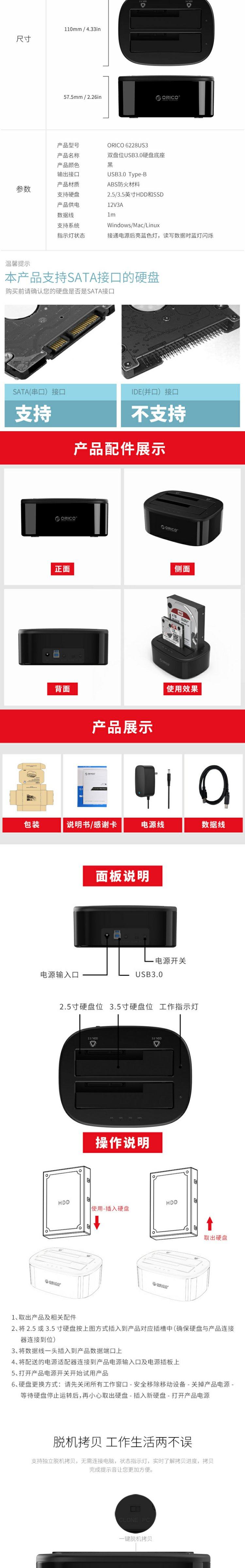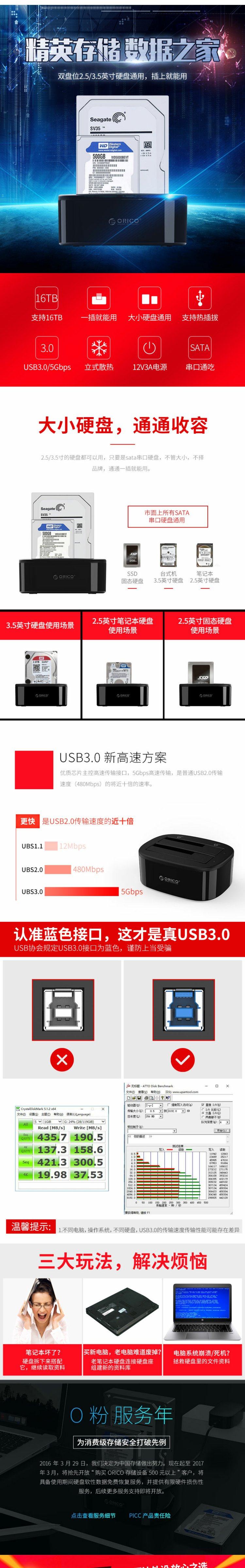 Orico 62288us3-C Мобильная база жесткого диска 2.5/3,5-дюймовый USB3.0 Внешний мобильный диск