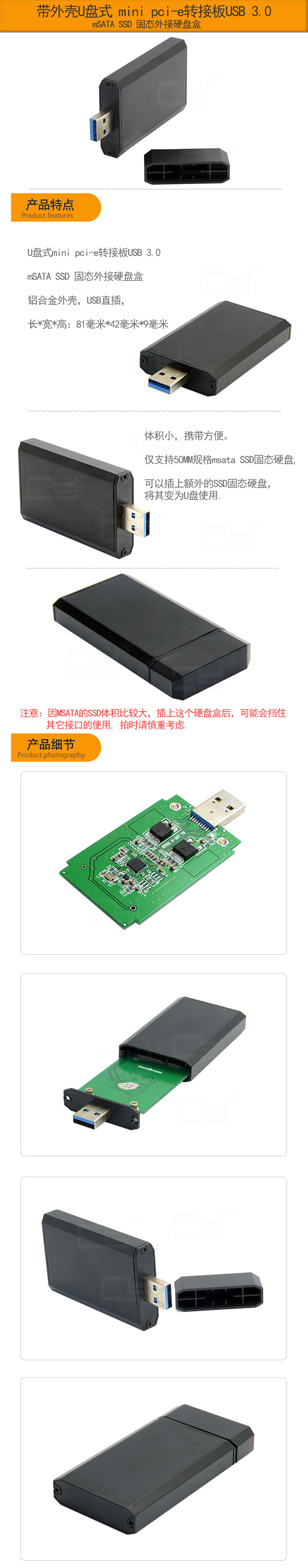 С оболочкой тип диска Mini PCI-E Board USB 3.0 MSATA SSD SOLID OVERTER HARD DISC BOX