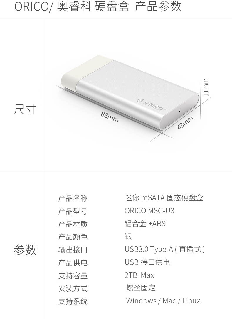 Aori Msata Hard Disk Box сплошной мобильный жесткий диск SSD Hard Disk Shell High -Speed USB3.0 Внешняя коробка компьютера.
