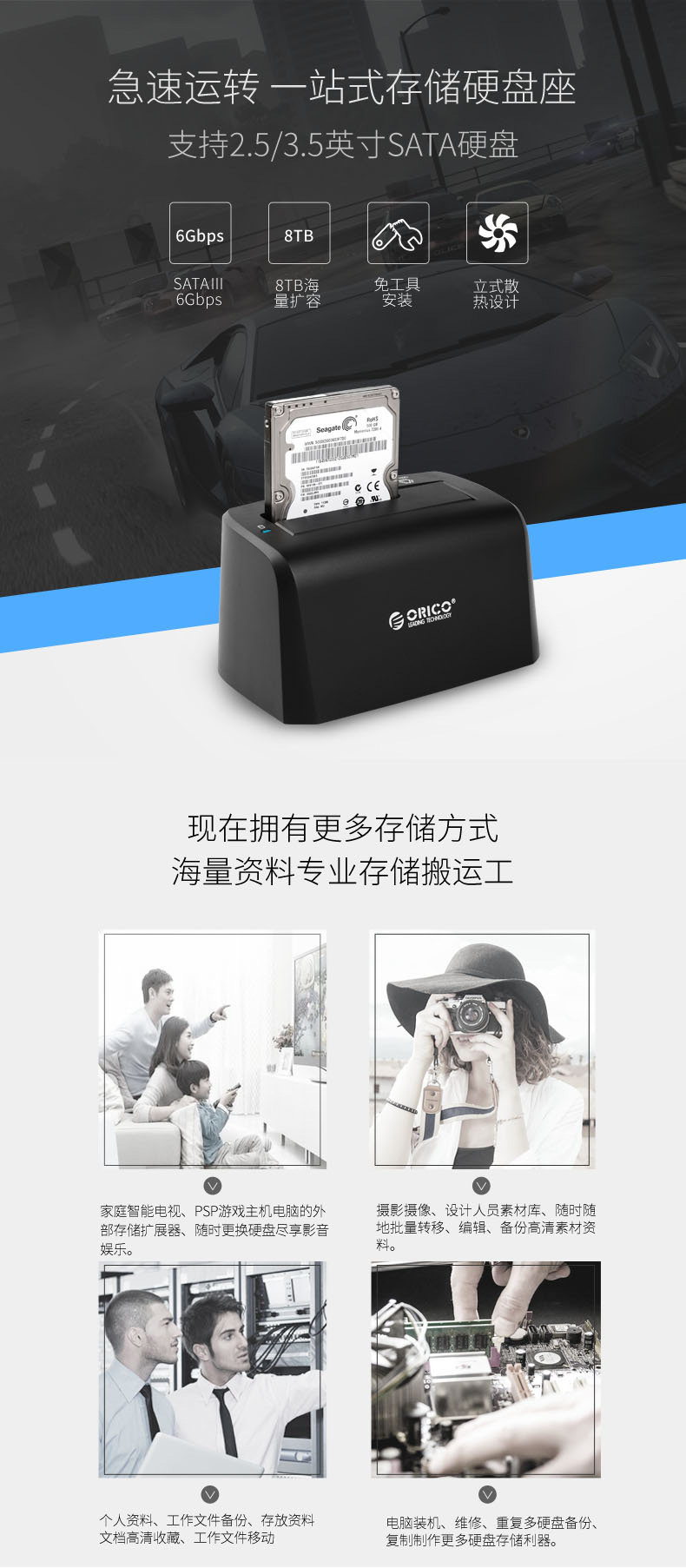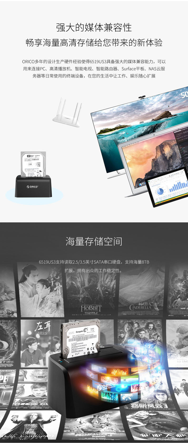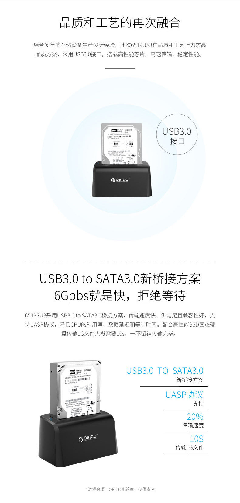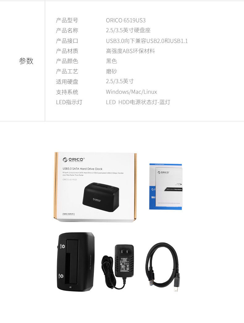 ORICO 6519 USB3.0 Основание жесткого диска 2.5 -INCH 3.5 -INCH GENERAPLIPPER -HARD DISK BOX BASE MOBIL HARD DISC BOX