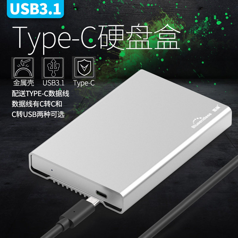 Lansshuo All Metal USB3.0 USB3.1 Type-C Мобильный жесткий дисковый ящик с радиатором C-A Cable