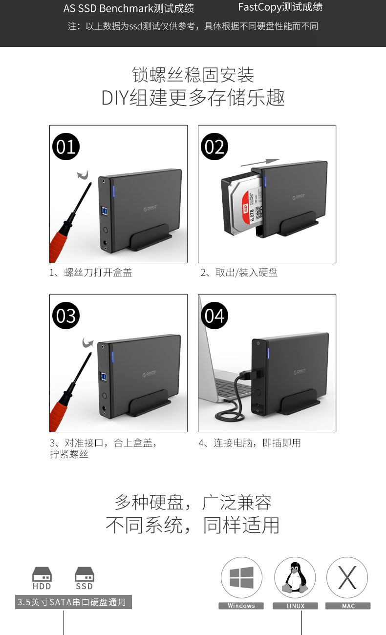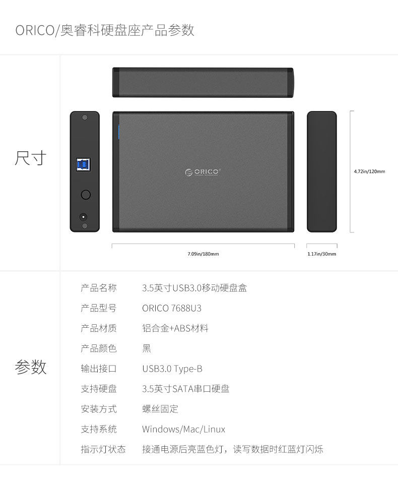 ORICO 7688U3 3,5 дюйма USB3.0 Hard Disk Box нижняя ноутбук Внешнее мобильное сиденье жесткого диска
