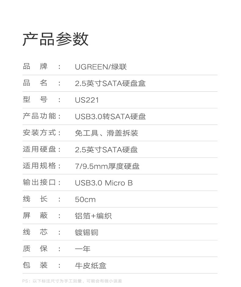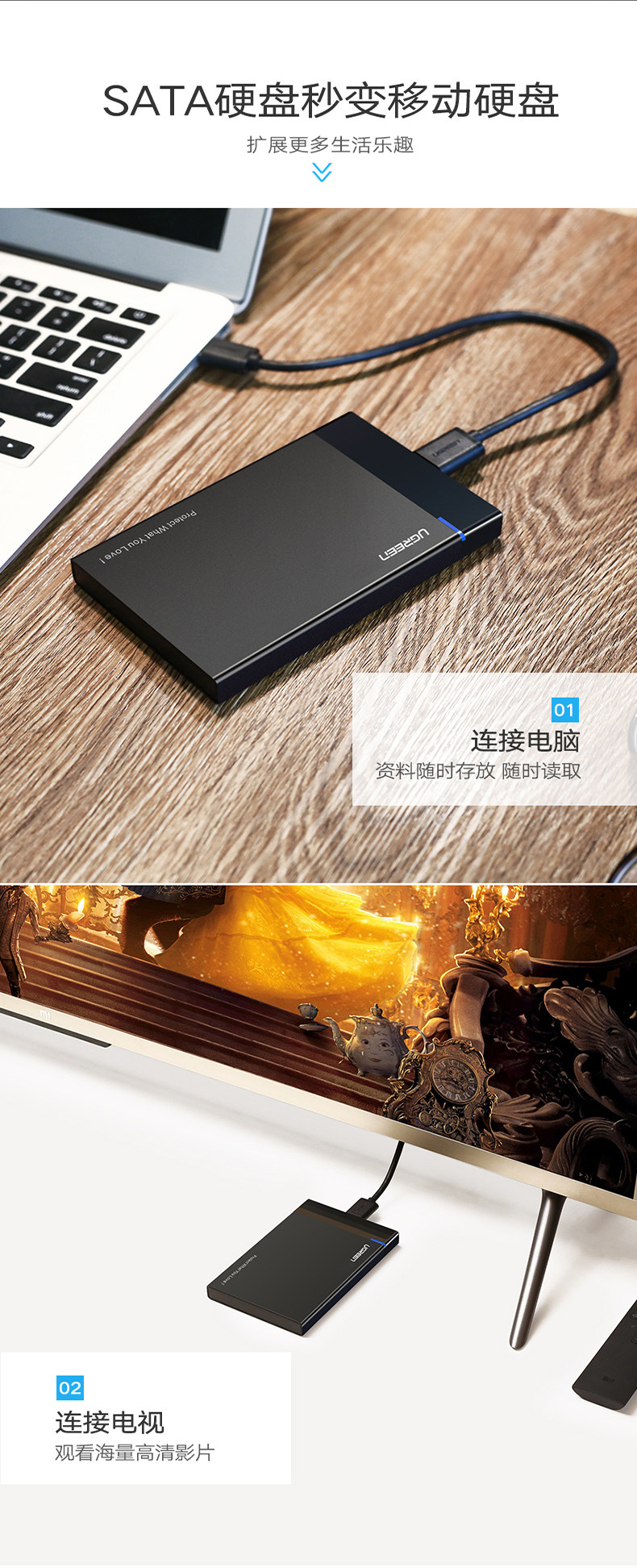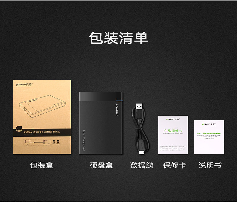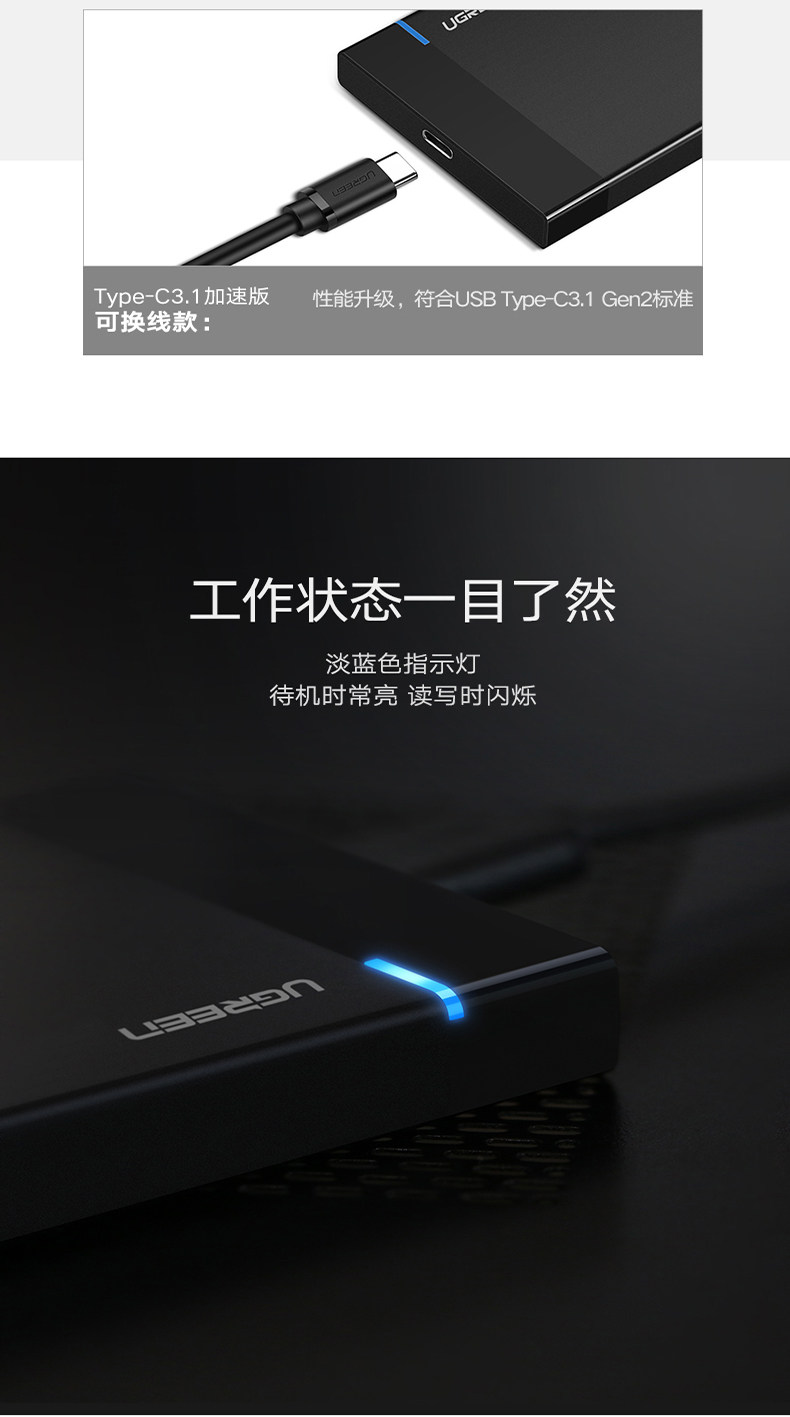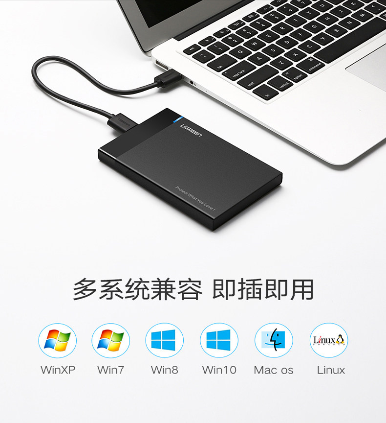 绿联 Мобильный жесткий диск, 2,5-дюймовый внешний механический твердотельный диск SATA для ноутбука, USB, универсальный SSD