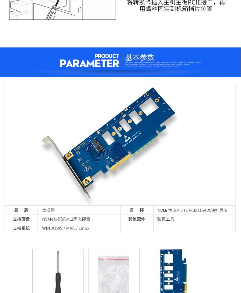 士必得 E5-A NVME M.2 Transfer PCIe Card Card M.2SSD твердотельный диск с твердым диском.