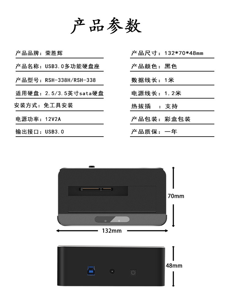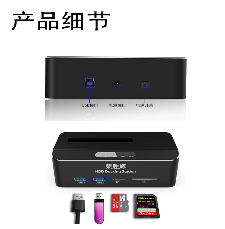 Rong Shenghui 3.5 -Inch Mobile Hard Disk Box Base Base 2.5sata Serial Port 3.0 Card Reader Mobile Box