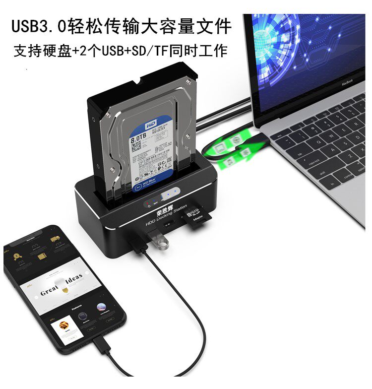 - Уровень одностороннего диска 2.5/3.5 -INCH SATA HARD DISK UNIVERSAL+USB3.0*2+SD/TF Функция