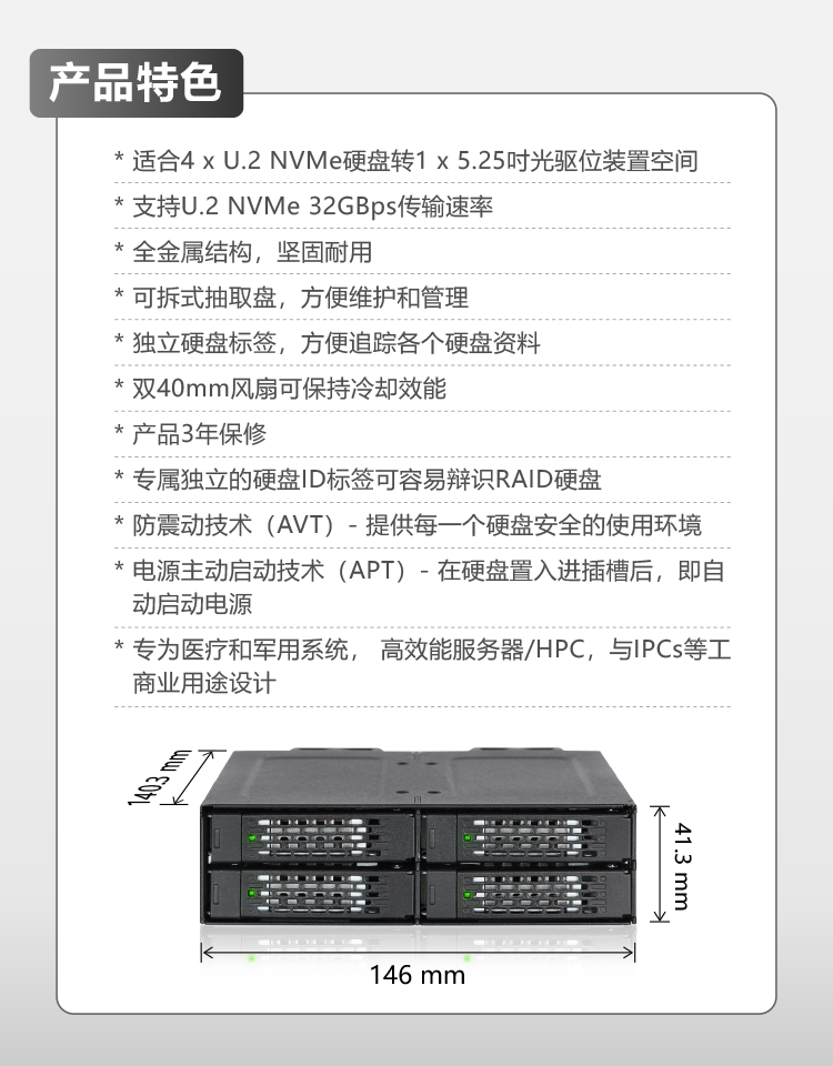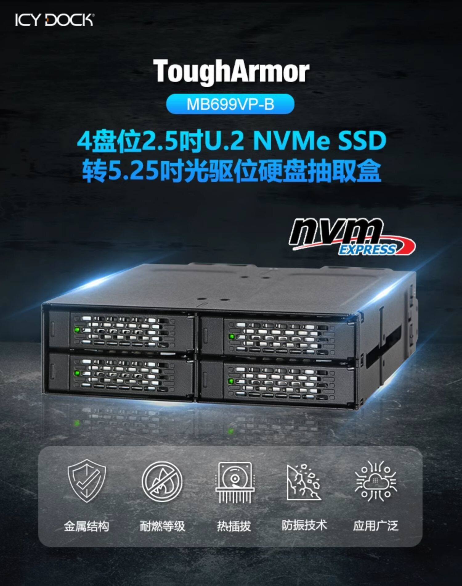 Icy Dock U.2nvme SFF8643SSD4 Прямые оптические диски тепловая капающая коробка жесткой диск MB699VP-B-B