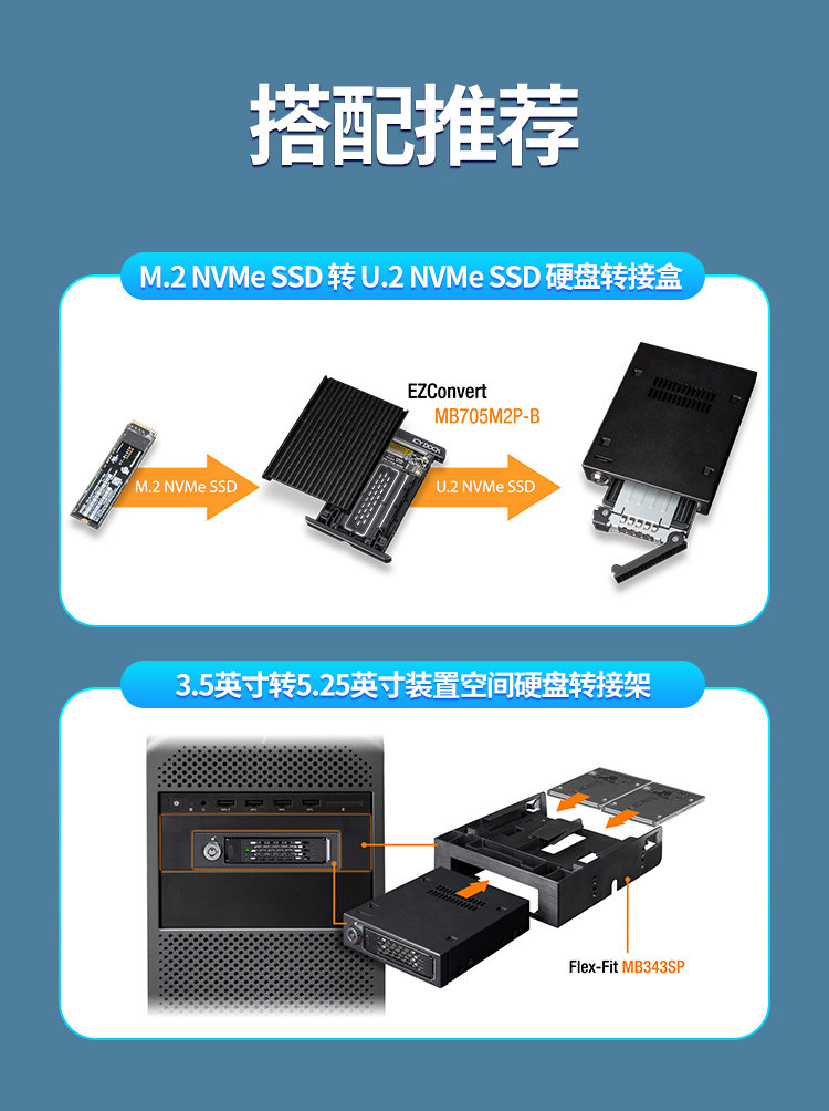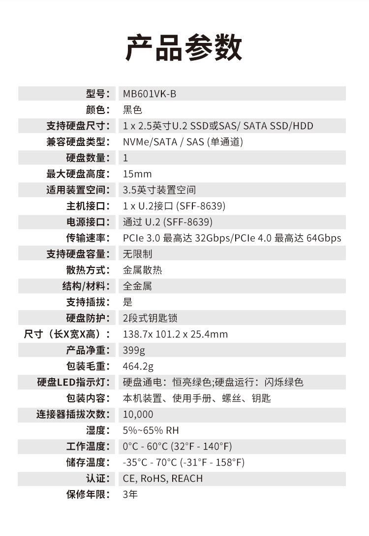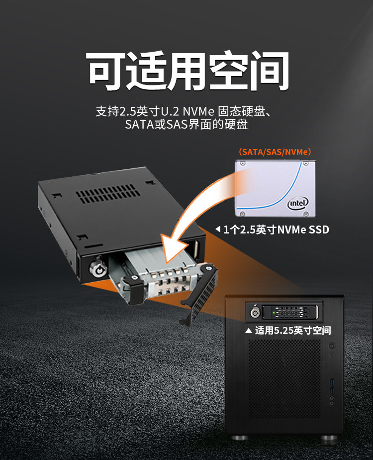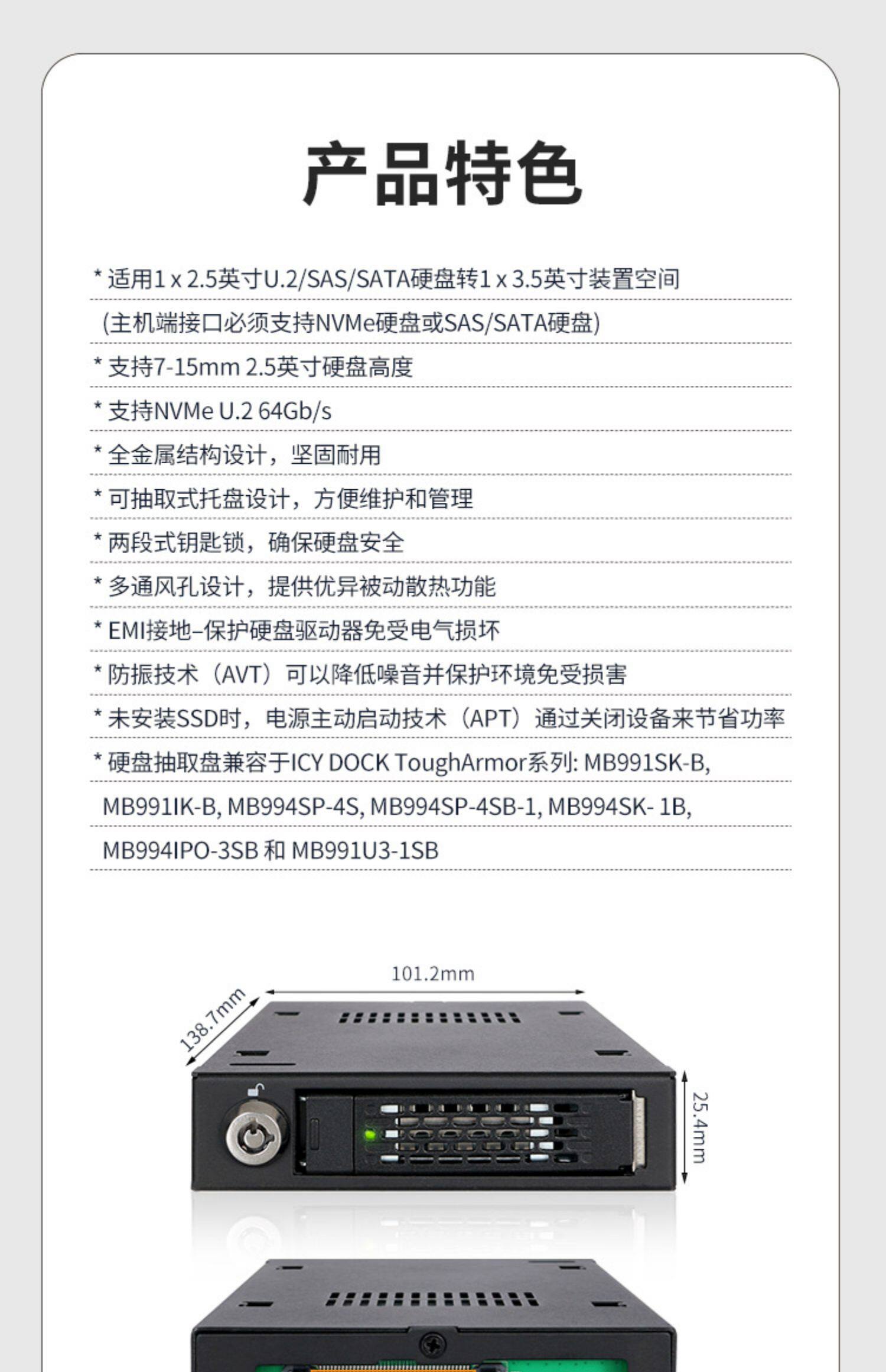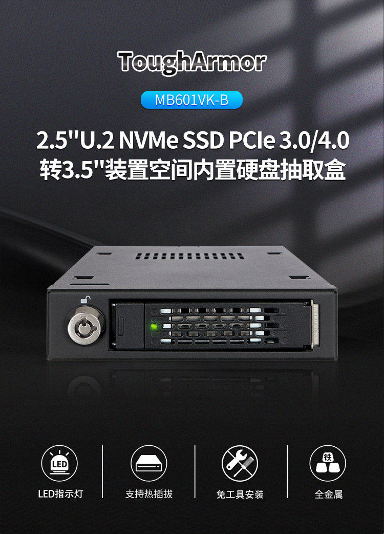 Icy Dock U.2 NVME SFF8639SSD Hard Disk Box Hot Plug-in Lock All-Metal MB601VK-B