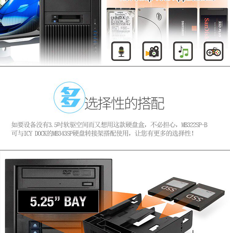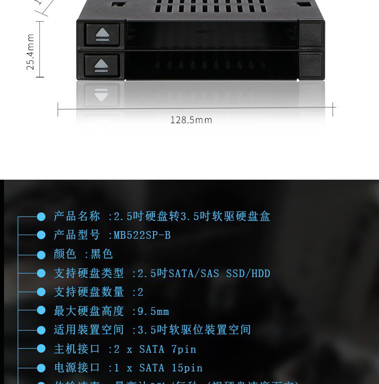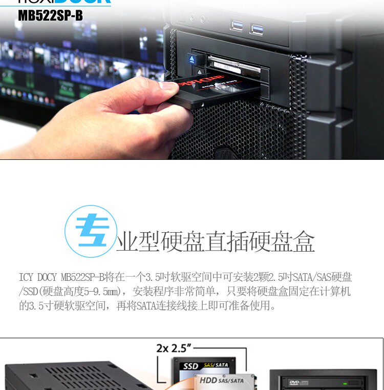 ICY DOCK MB522SP-B2.5Sata Сплошное состояние SSD до 3,5-дюймового положения дисковода-диска подключено к ящику для извлечения жесткого диска