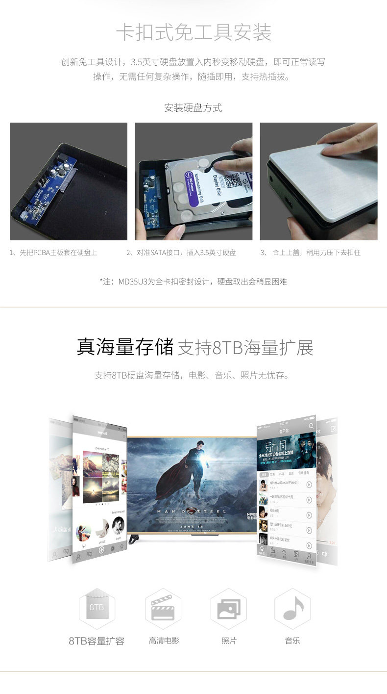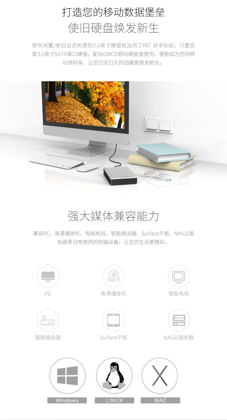Orico 3.5 -Inch Mobile Hard Disk Box USB3.0 настольный ноутбук SATA SERIAL Внешний жесткий диск коробка