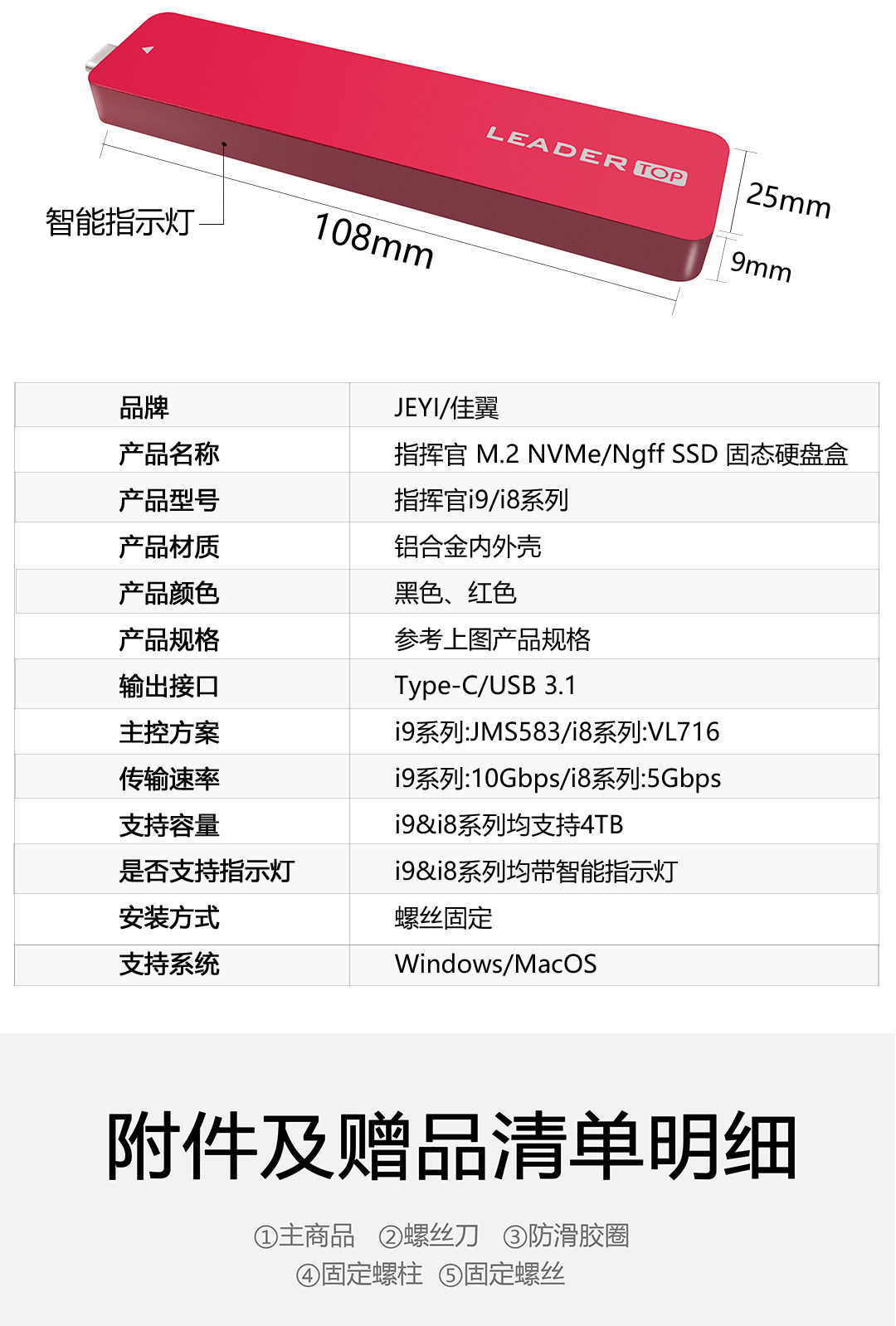 Командующий Jiayi M.2nvme твердый жесткий диск превращается в USB3.1 Внешний прямоугольный тип-C/A Hard Disk Box SSD