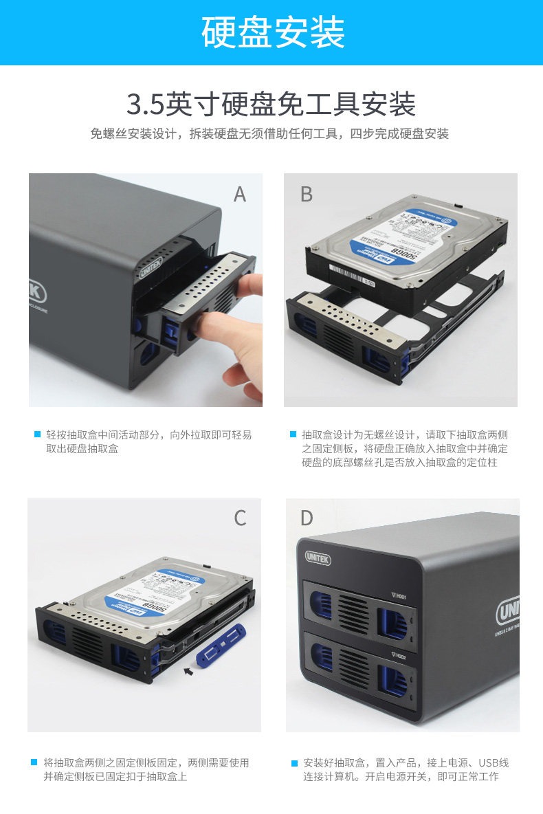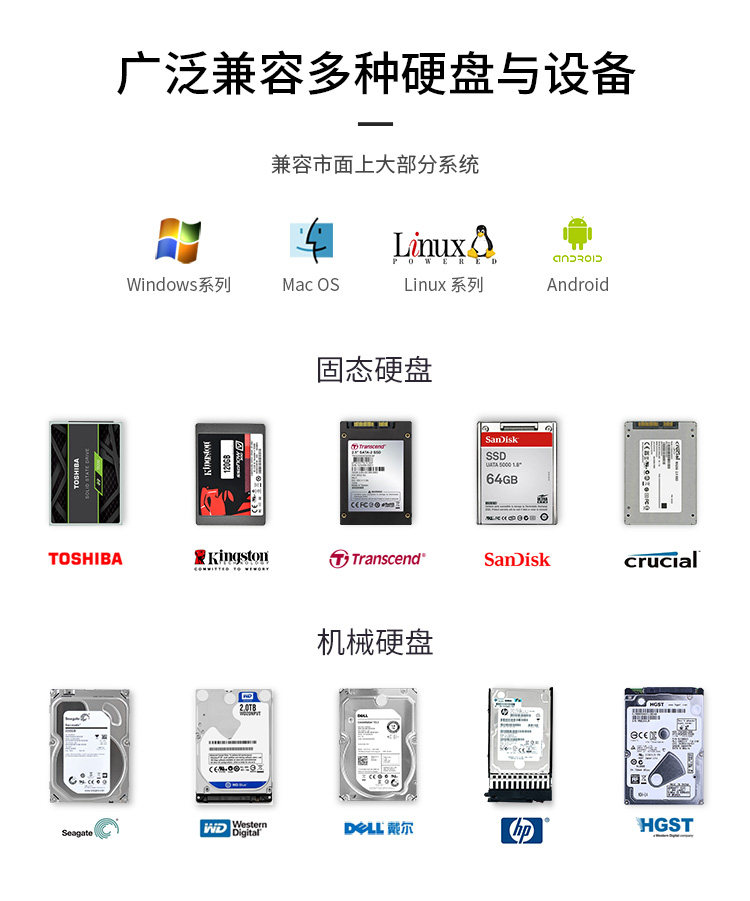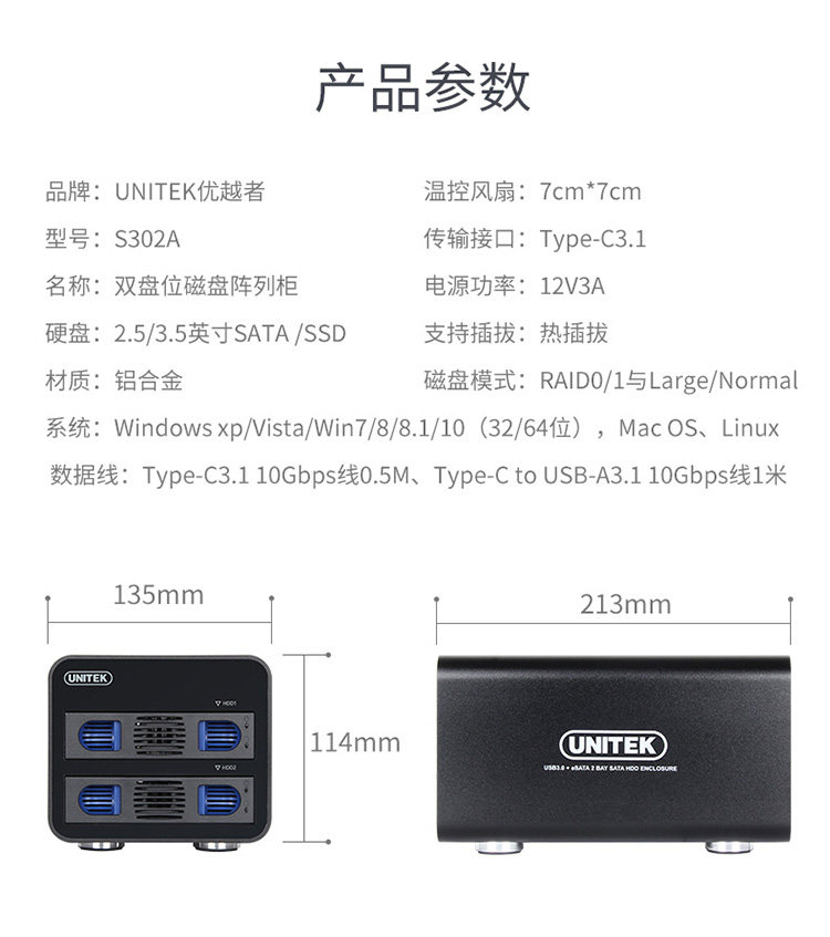 优越者 Дисковый шкаф Multi-Disk 2,5/3,5-дюймовый механический/SSD Твердый штат Мобильный жесткий диск Рейд с двумя дисками