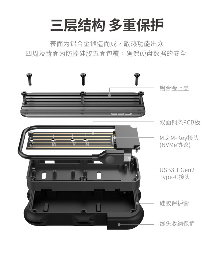 Военные правила INEO, водонепроницаемый металлический металл M.2 NVME SSD твердое твердое состояние типа C
