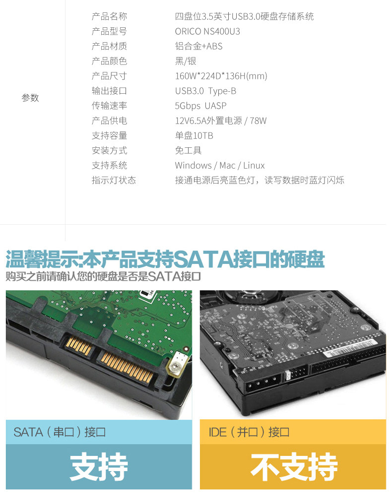 Orico/奥睿科 Внешний шкаф с несколькими приводами. 3,5-дюймовый внешний жесткий дисковый стол
