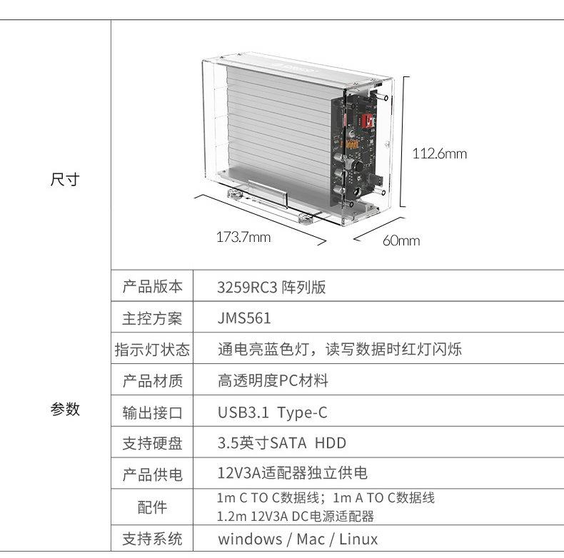 Orico/奥睿科 3.5 -Inch Dual Disk Raid Hard Disk Box с массивом USB3.0 Внешнее мобильное жесткое дисковое ящик