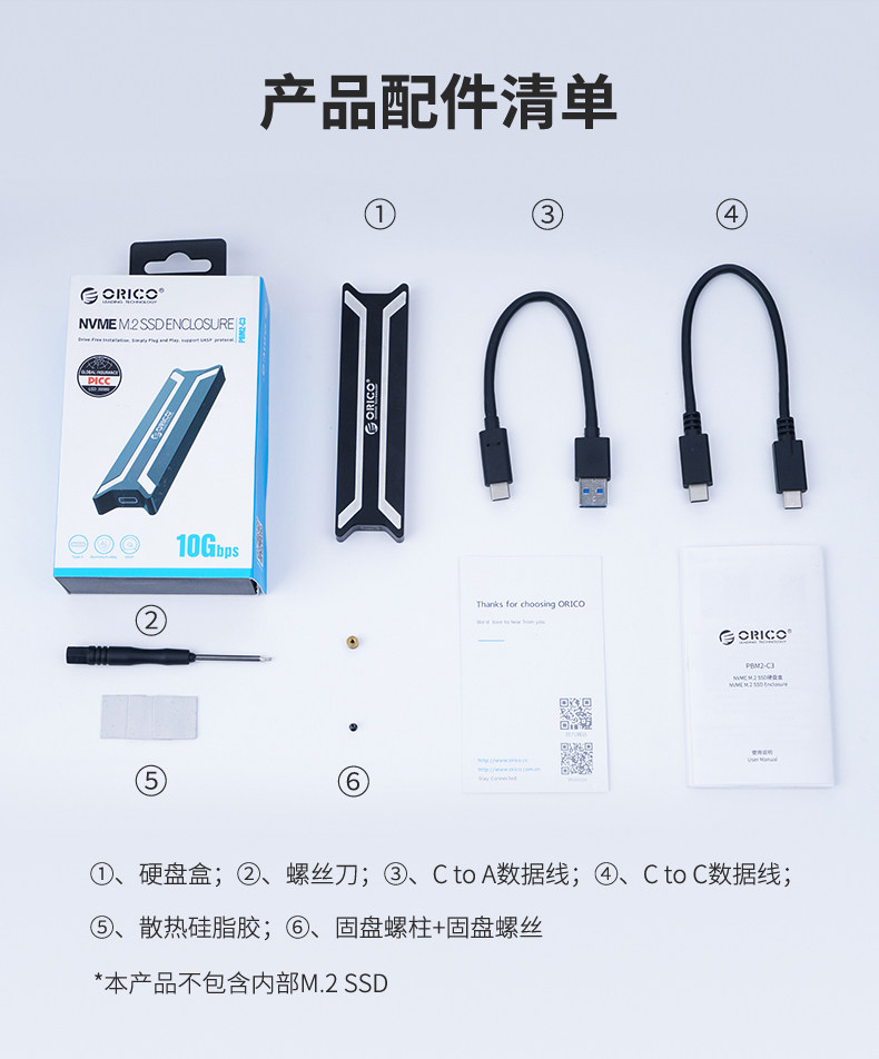 Orico/奥睿科 M.2 NVME Hard Disk Box USB3.1 Type-C Gen2 Mobile SSD SOLID Laptop Computer Hard Disk Outter Box Aluminum сплав с высокой скоростью 10 Гбит / с.