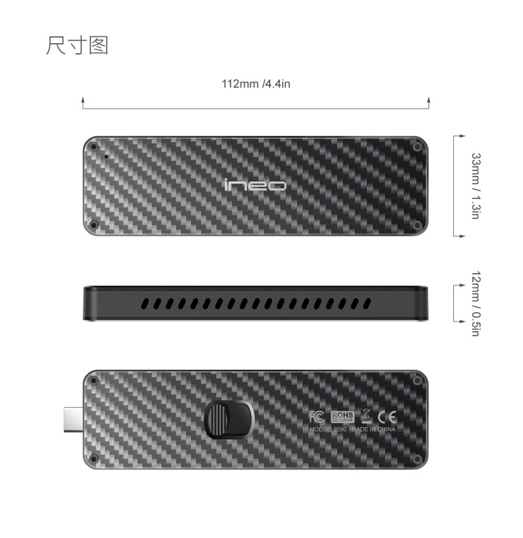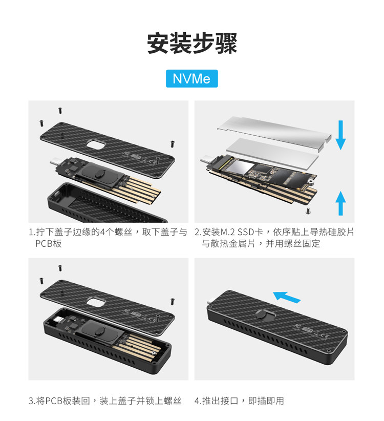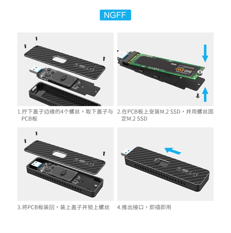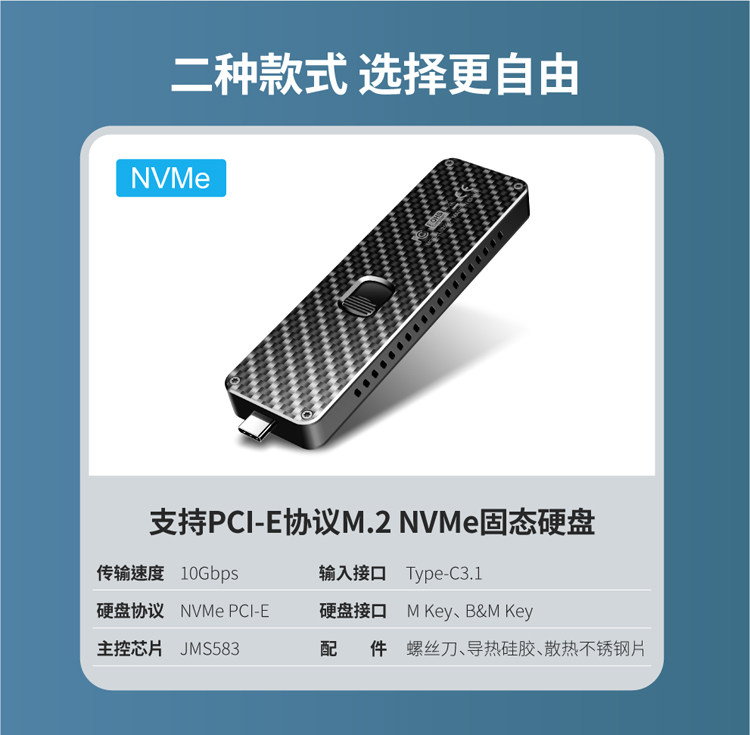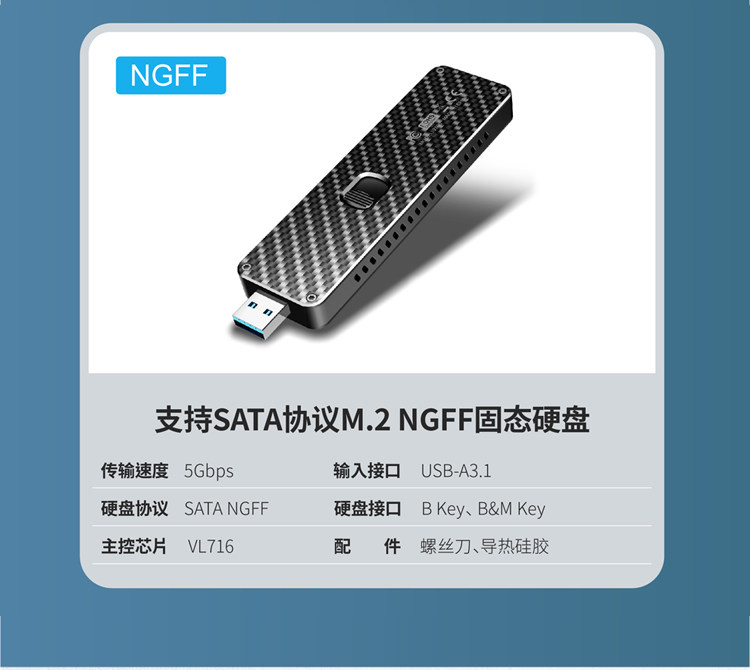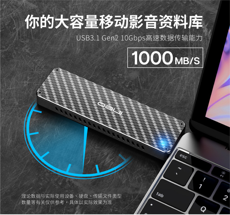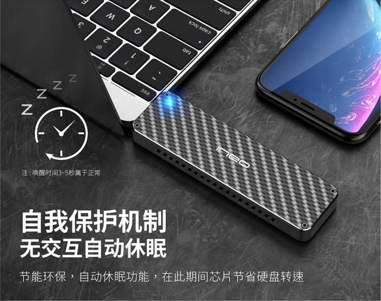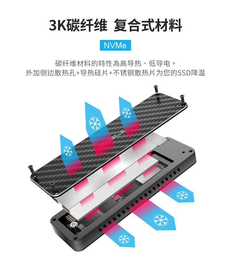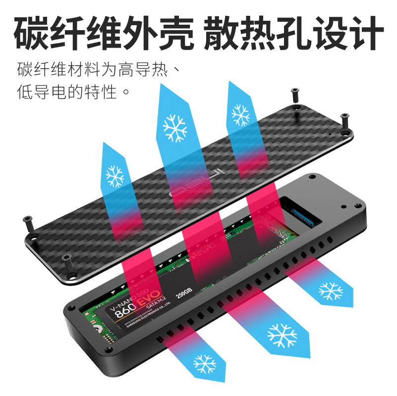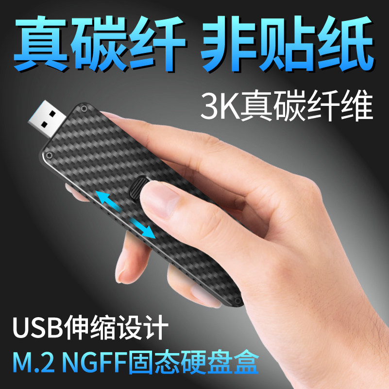 Углеродное волокно Self -Expansion USB для NGFF/NVME M.2 SSD до USB3.1SSD Мобильный твердый твердый диск коробка