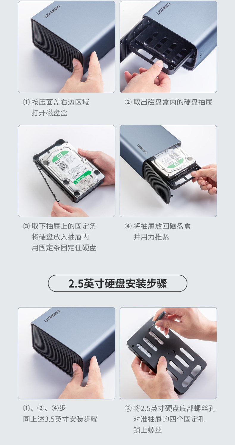 绿联 Хард -диск массив коробки диска шкаф алюминиевый сплав с мульти -диск -рейдом Внешняя клетка SATA Base Base Reader