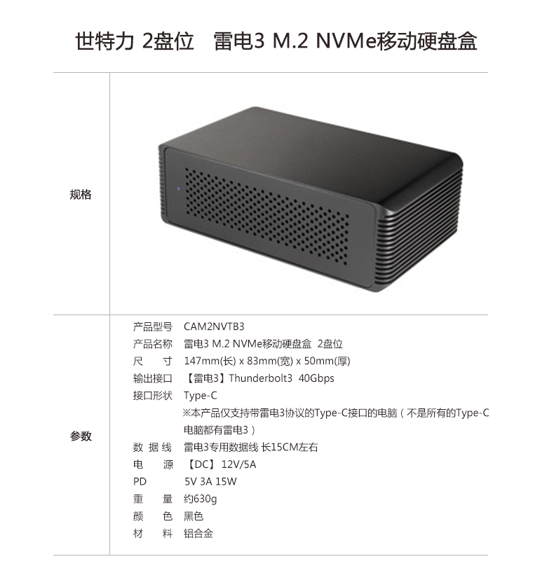 世特力 Thunderbolt3 Lightning 3 M.2 NVME PCI-E Mobile Hard Disk Box 2