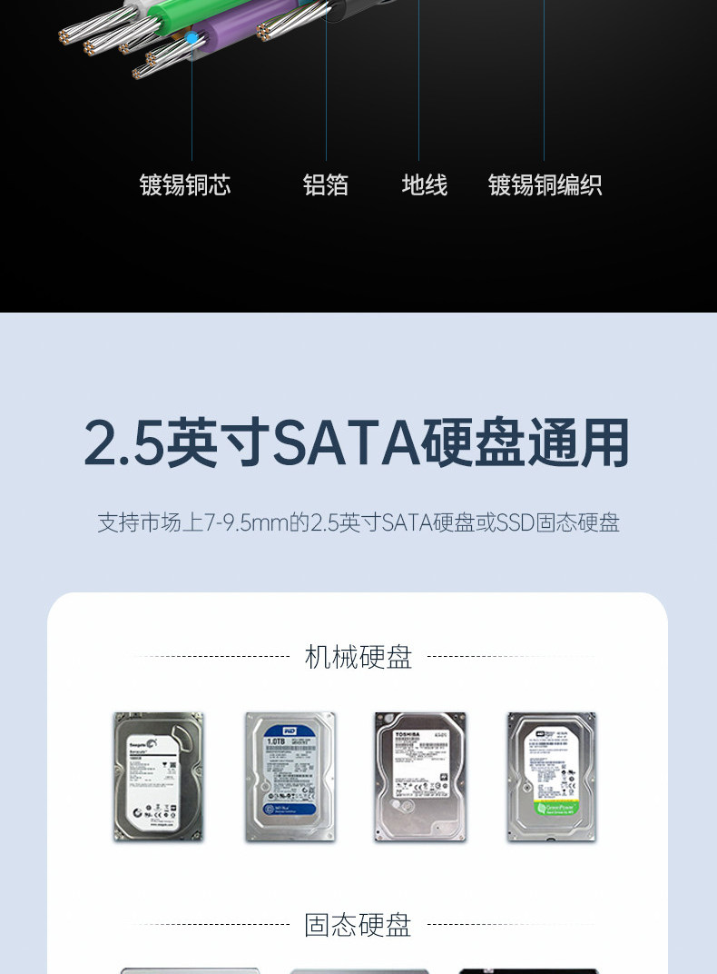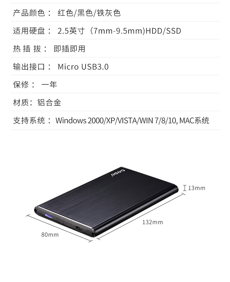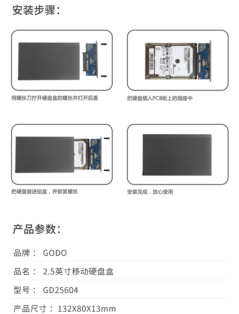 GODO Мобильный жесткий диск коробка 2.5 -Inch General -purpose Metal Внешняя коробка SATA до USB3.0 Hard Disk Read Shell