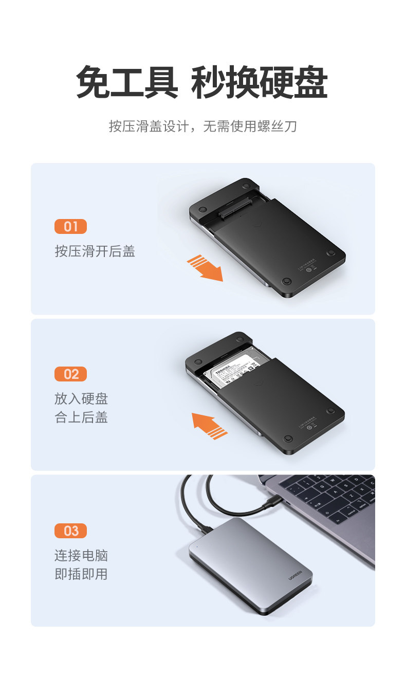 绿联 Мобильный жесткий диск коробка 2,5 дюйма USB3.1type-C Внешний тип таблицы считывателей Универсальный яблочный ноутбук SATA Механический SSD Сплошной жесткий диск модифицированный защитный корпус с внешним соединением