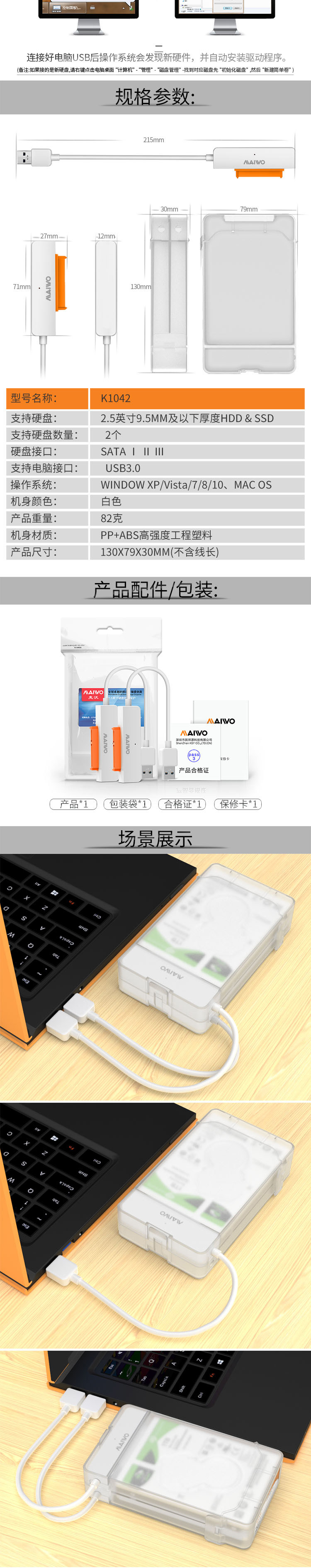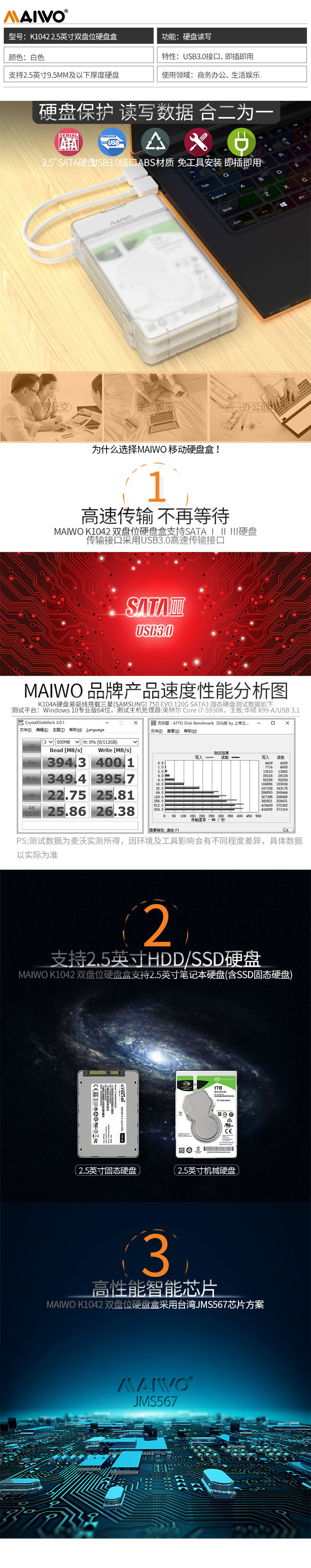 MAIWO 2.5 -INCH MOBIL HARD DISK BOX 3.0 Чтение ноутбука Механический твердый сплошной серийный порт с двойным диск. K1042